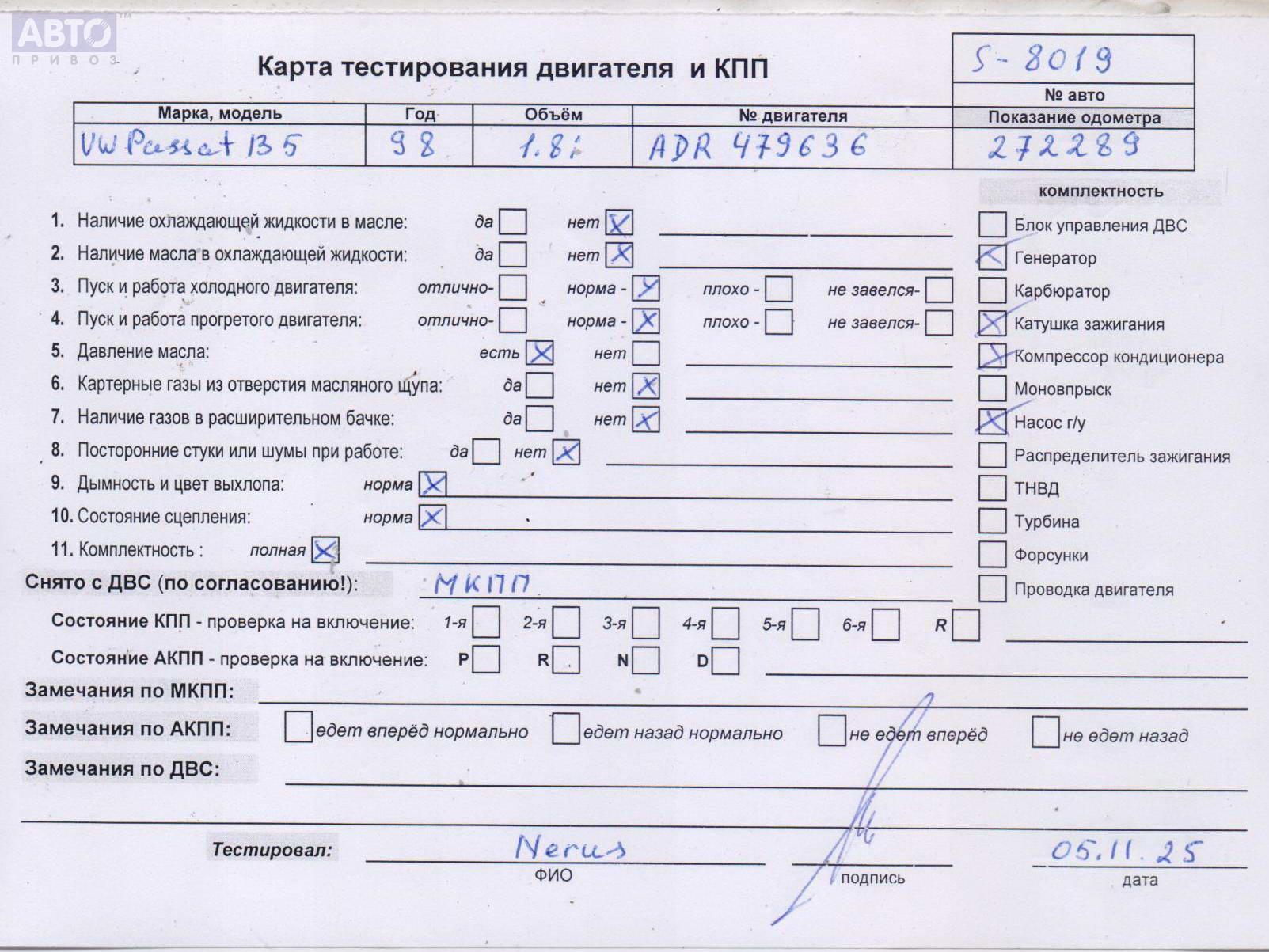 | Марка / Модель / Год: | Volkswagen Passat B5 1998 |
