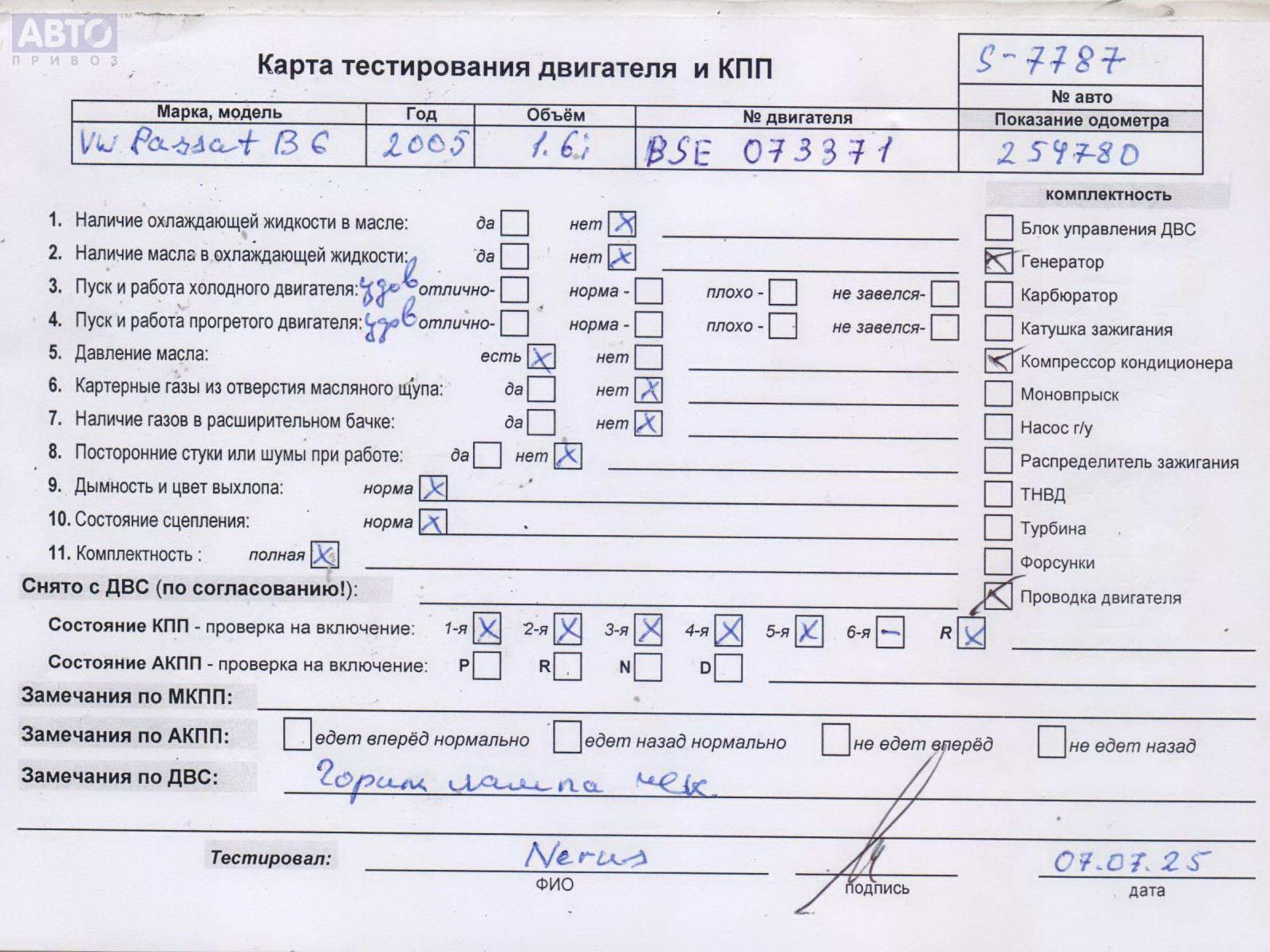 | Марка / Модель / Год: | Volkswagen Passat B6 2005 |
