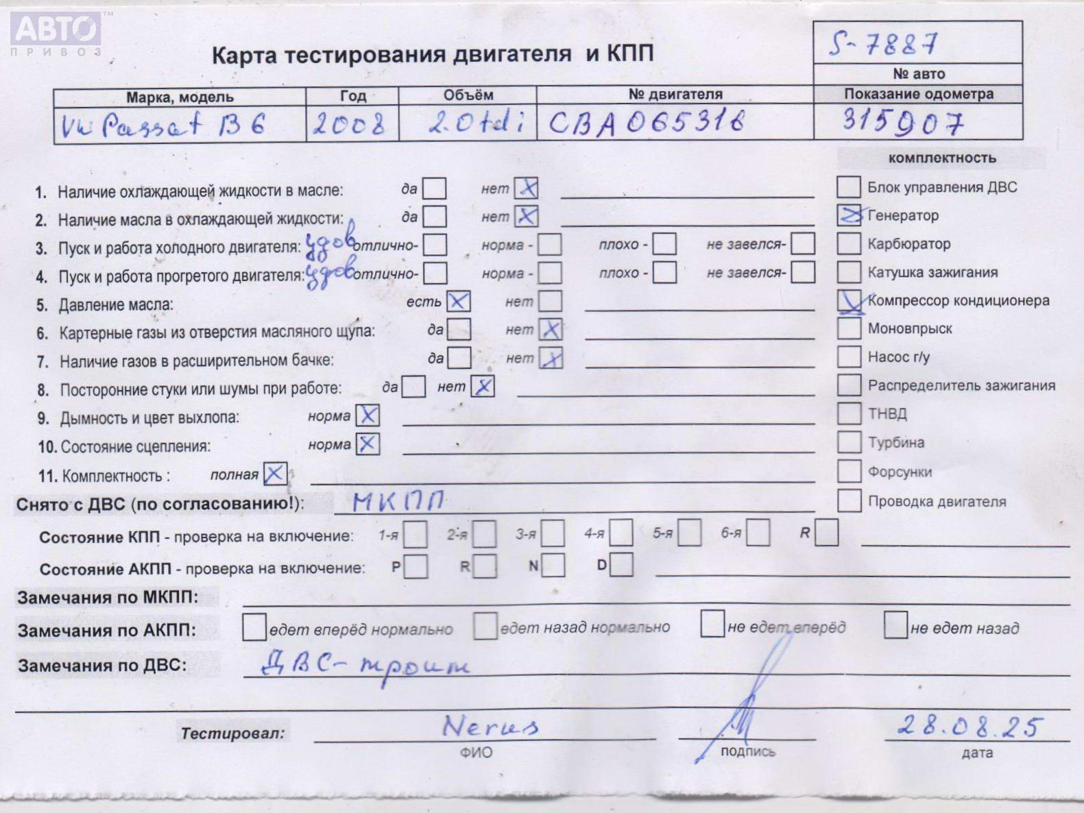 | Марка / Модель / Год: | Volkswagen Passat B6 2008 |