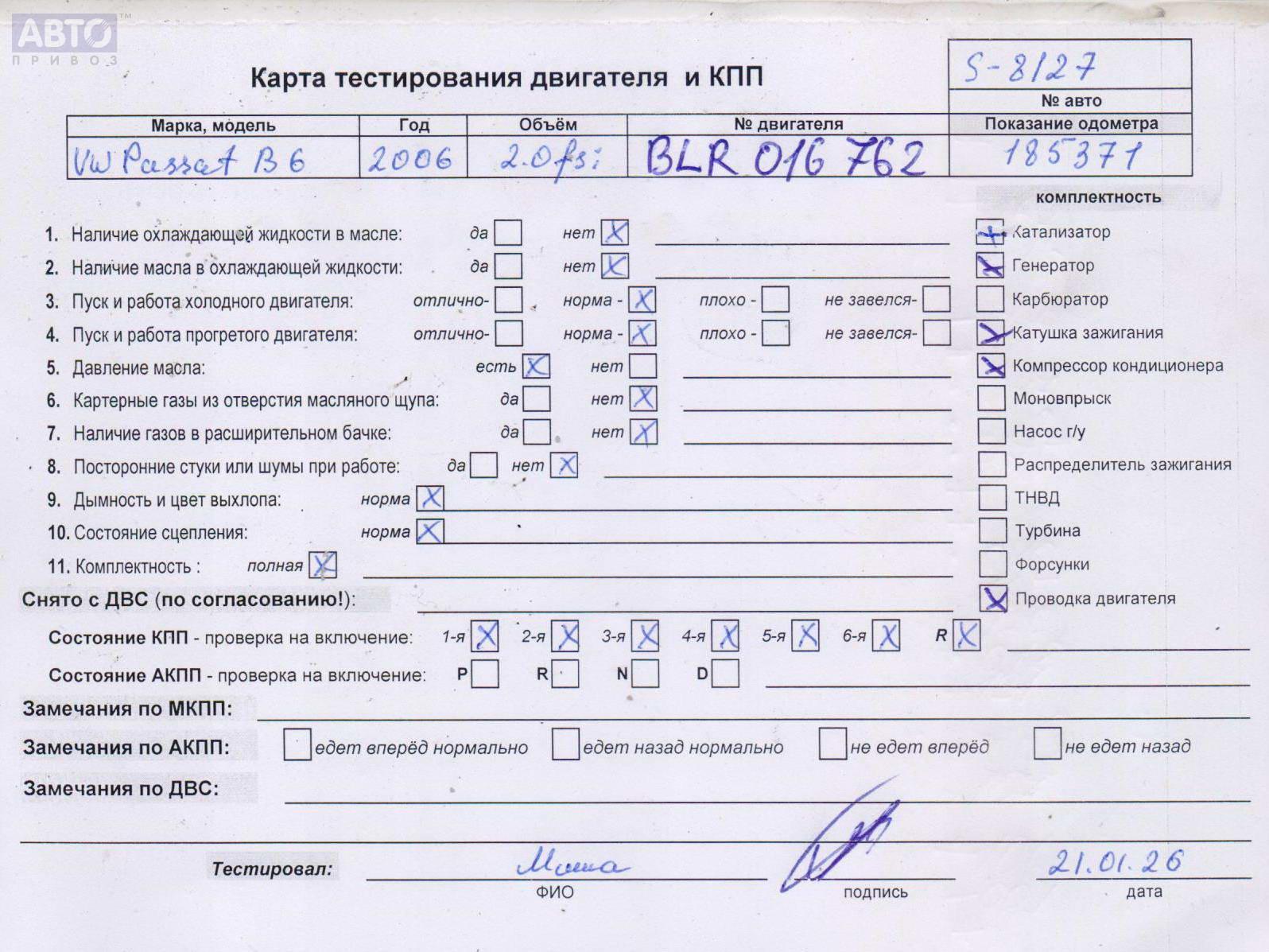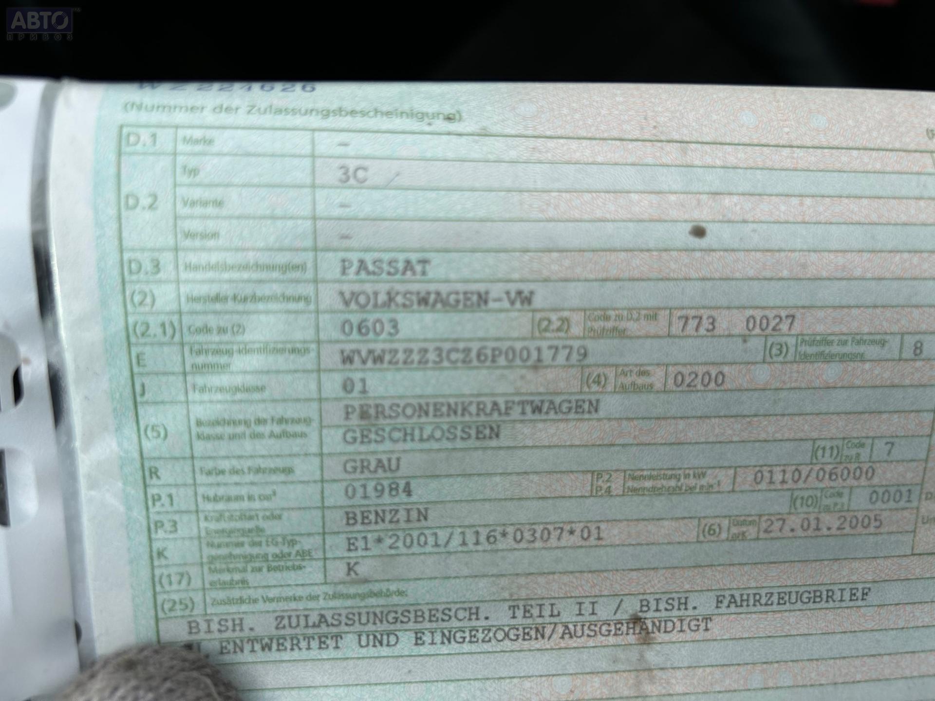 | Марка / Модель / Год: | Volkswagen Passat B6 2006 |