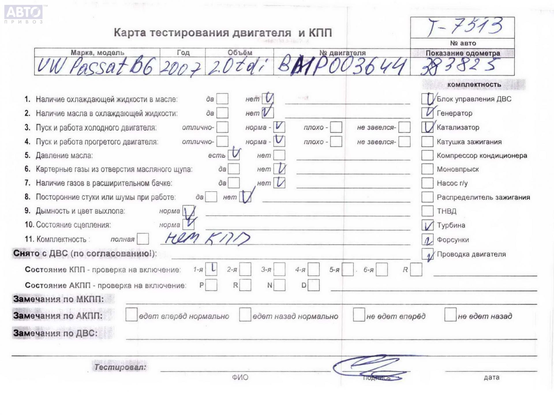 | Марка / Модель / Год: | Volkswagen Passat B6 2007 |