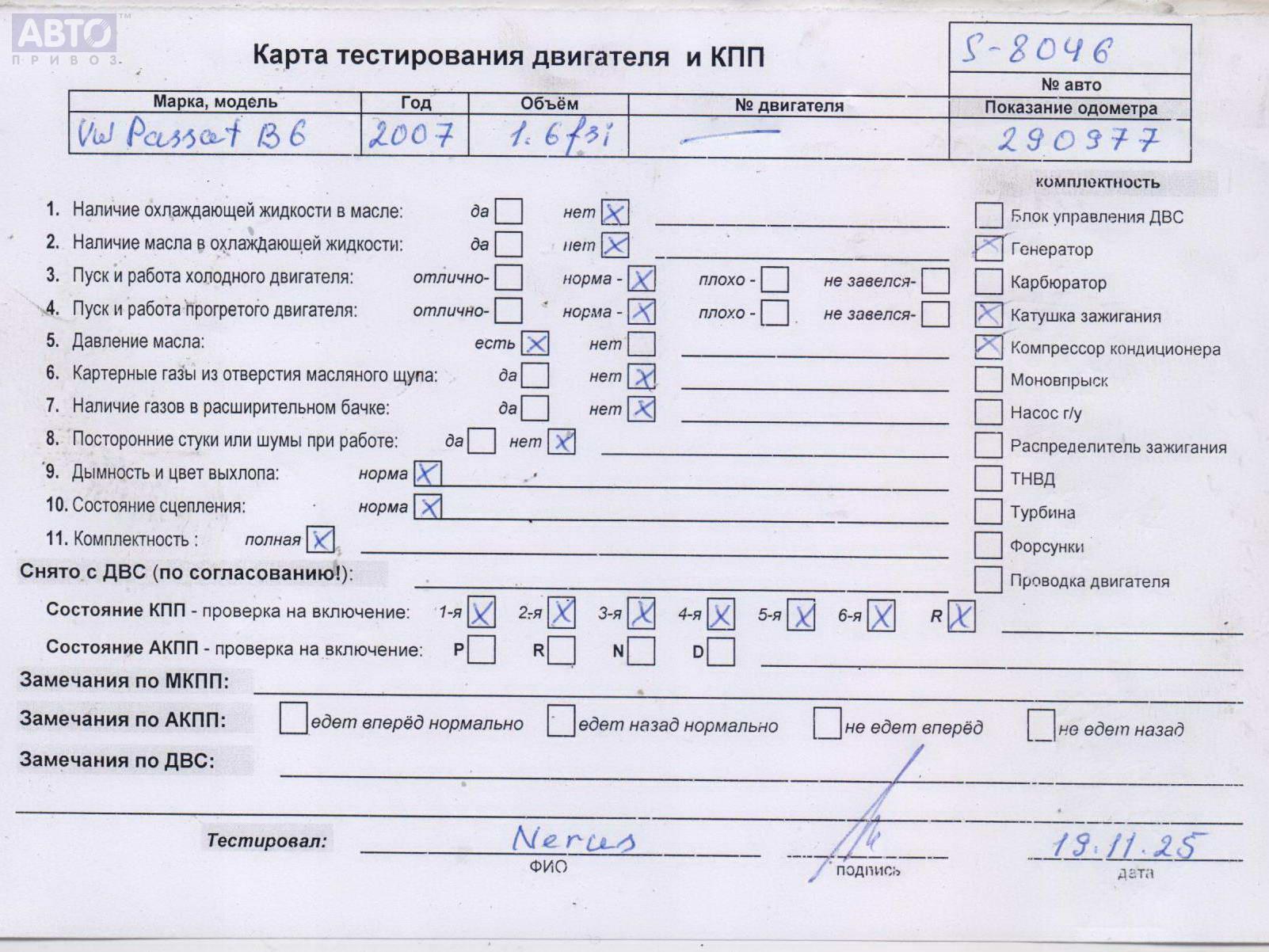| Марка / Модель / Год: | Volkswagen Passat B6 2007 |