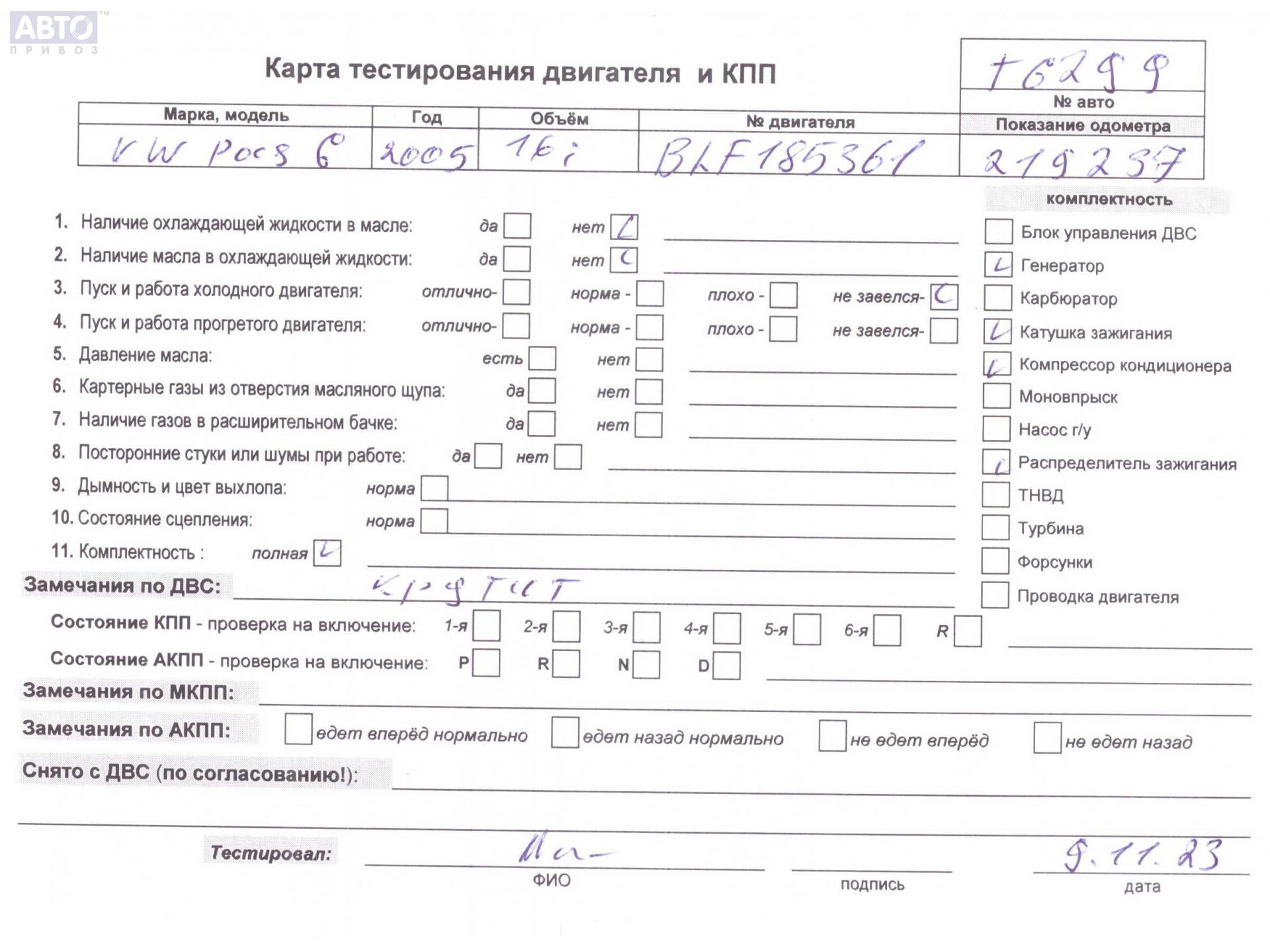 | Марка / Модель / Год: | Volkswagen Passat B6 2005 |