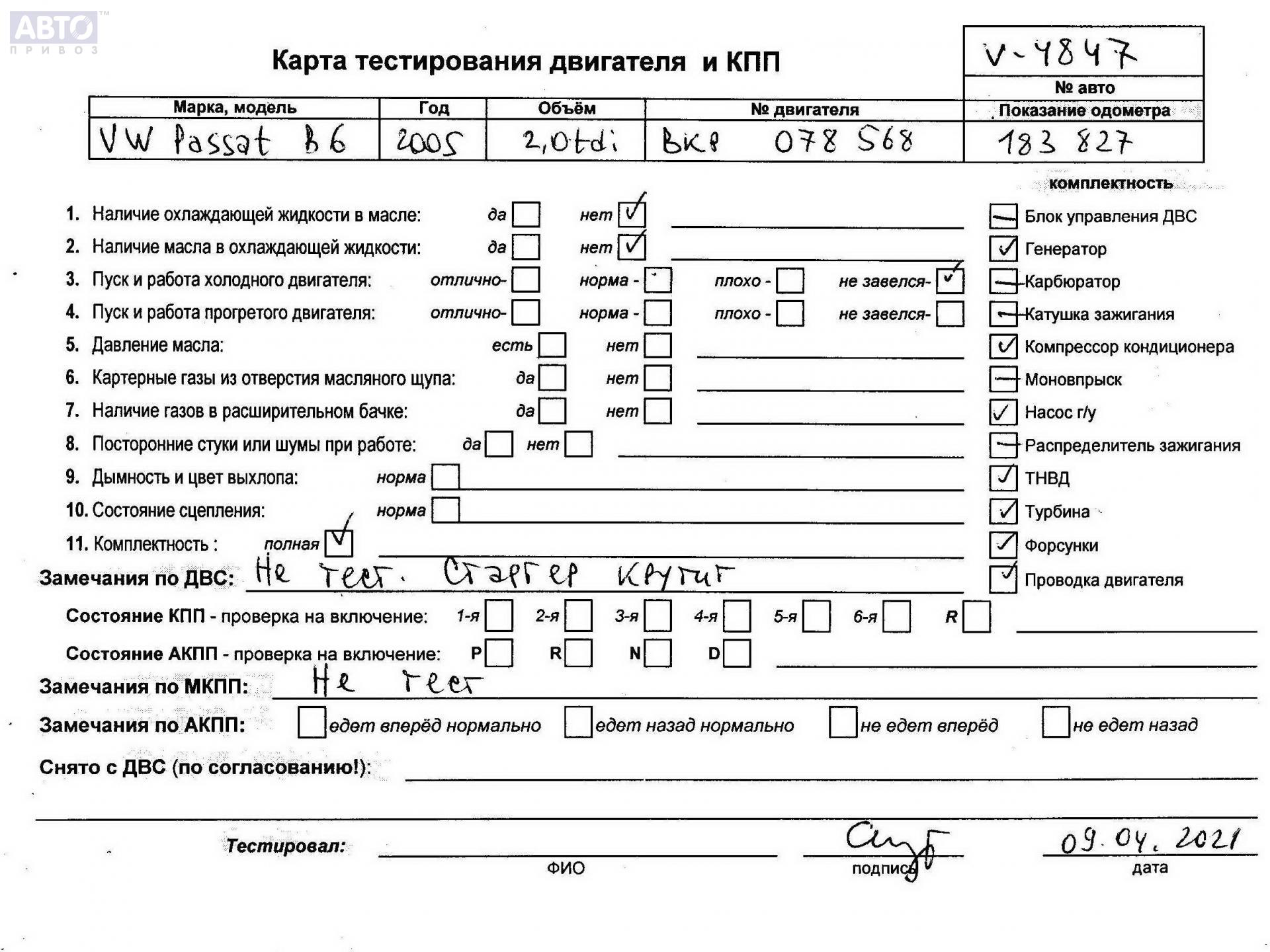 | Марка / Модель / Год: | Volkswagen Passat B6 2005 |