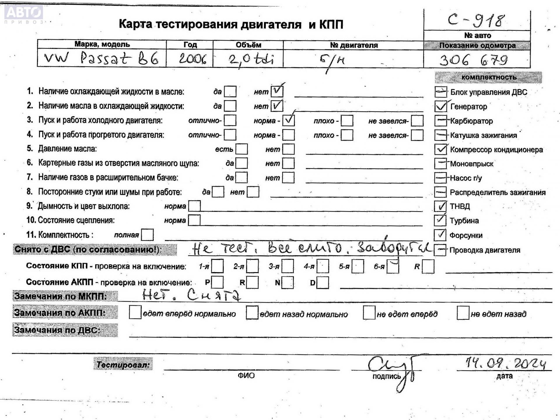 | Марка / Модель / Год: | Volkswagen Passat B6 2006 |