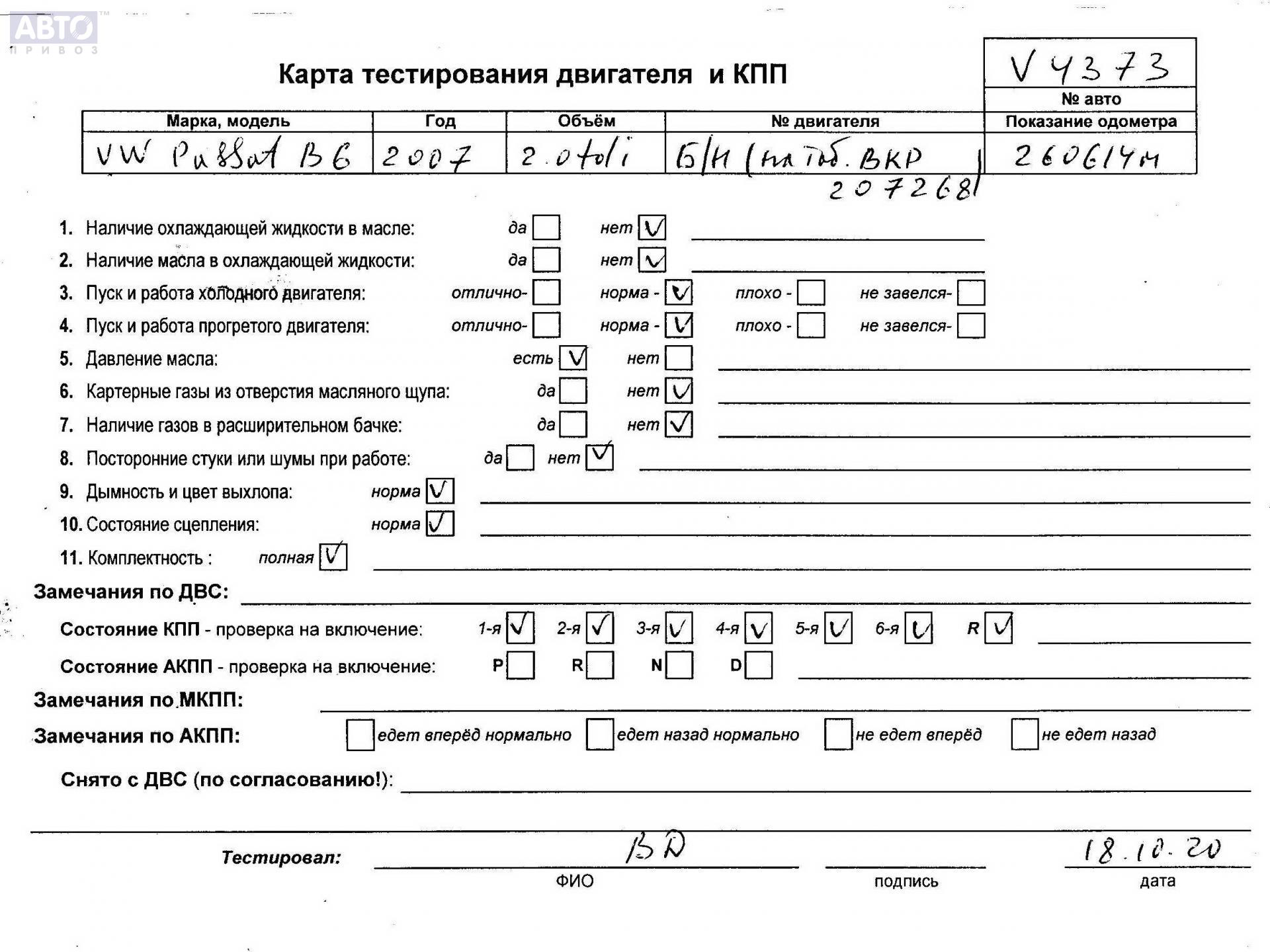| Марка / Модель / Год: | Volkswagen Passat B6 2007 |