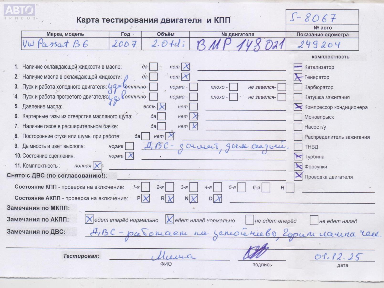 | Марка / Модель / Год: | Volkswagen Passat B6 2007 |