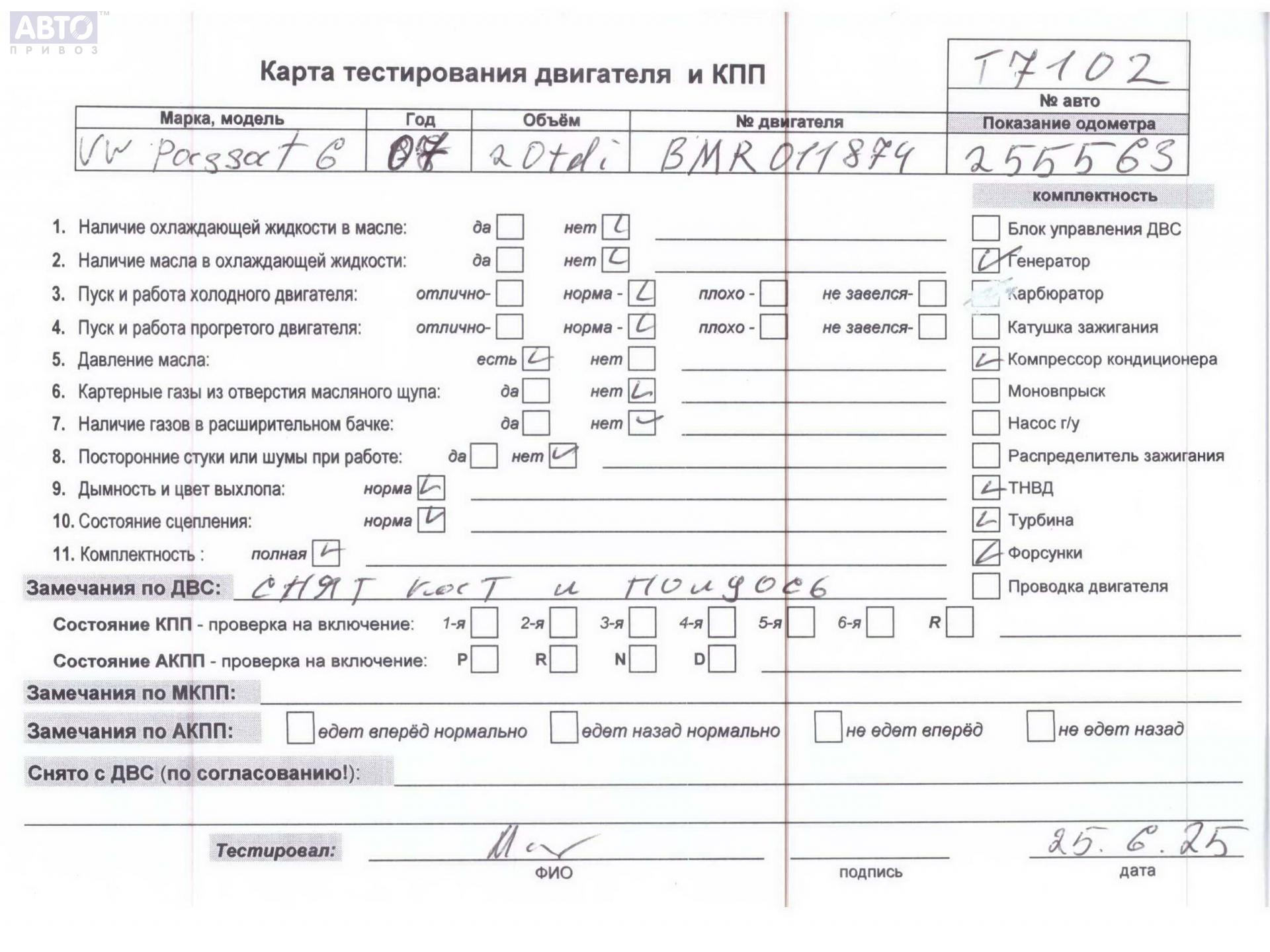 | Марка / Модель / Год: | Volkswagen Passat B6 2007 |