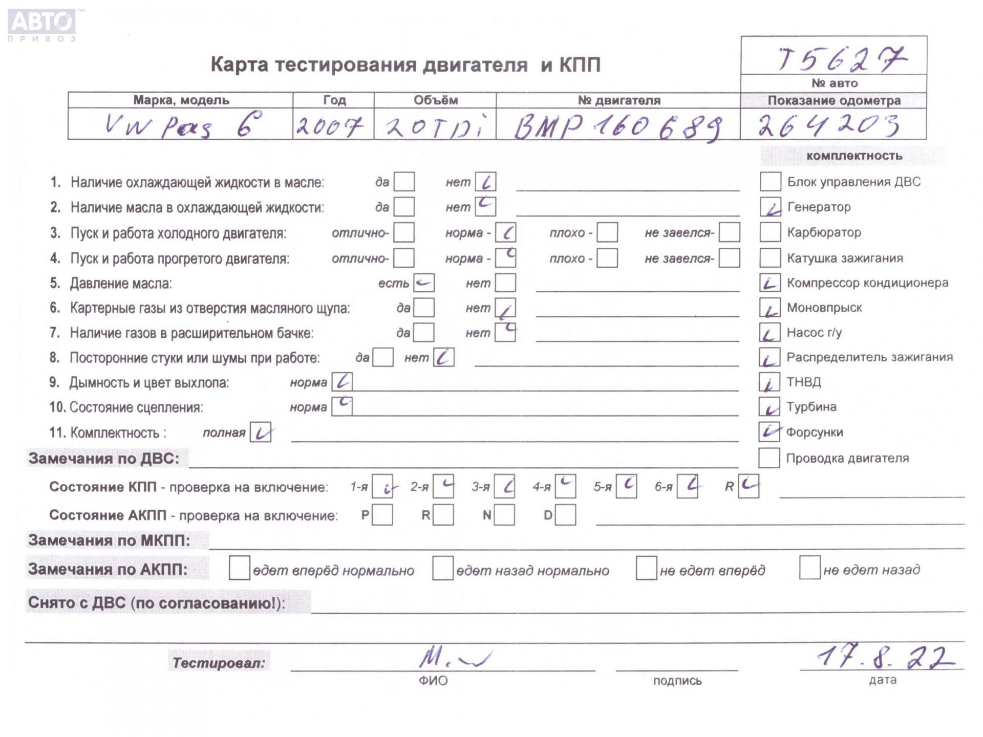 | Марка / Модель / Год: | Volkswagen Passat B6 2007 |