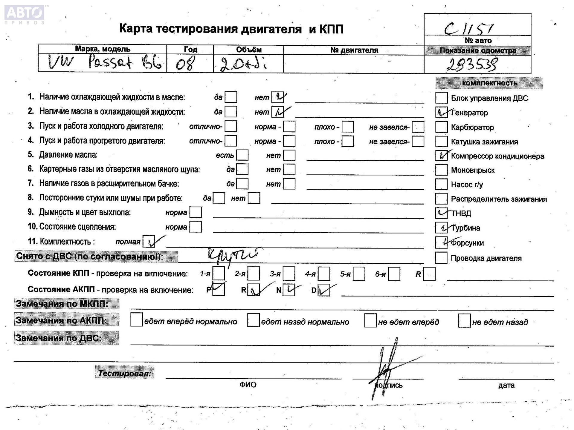 | Марка / Модель / Год: | Volkswagen Passat B6 2008 |
