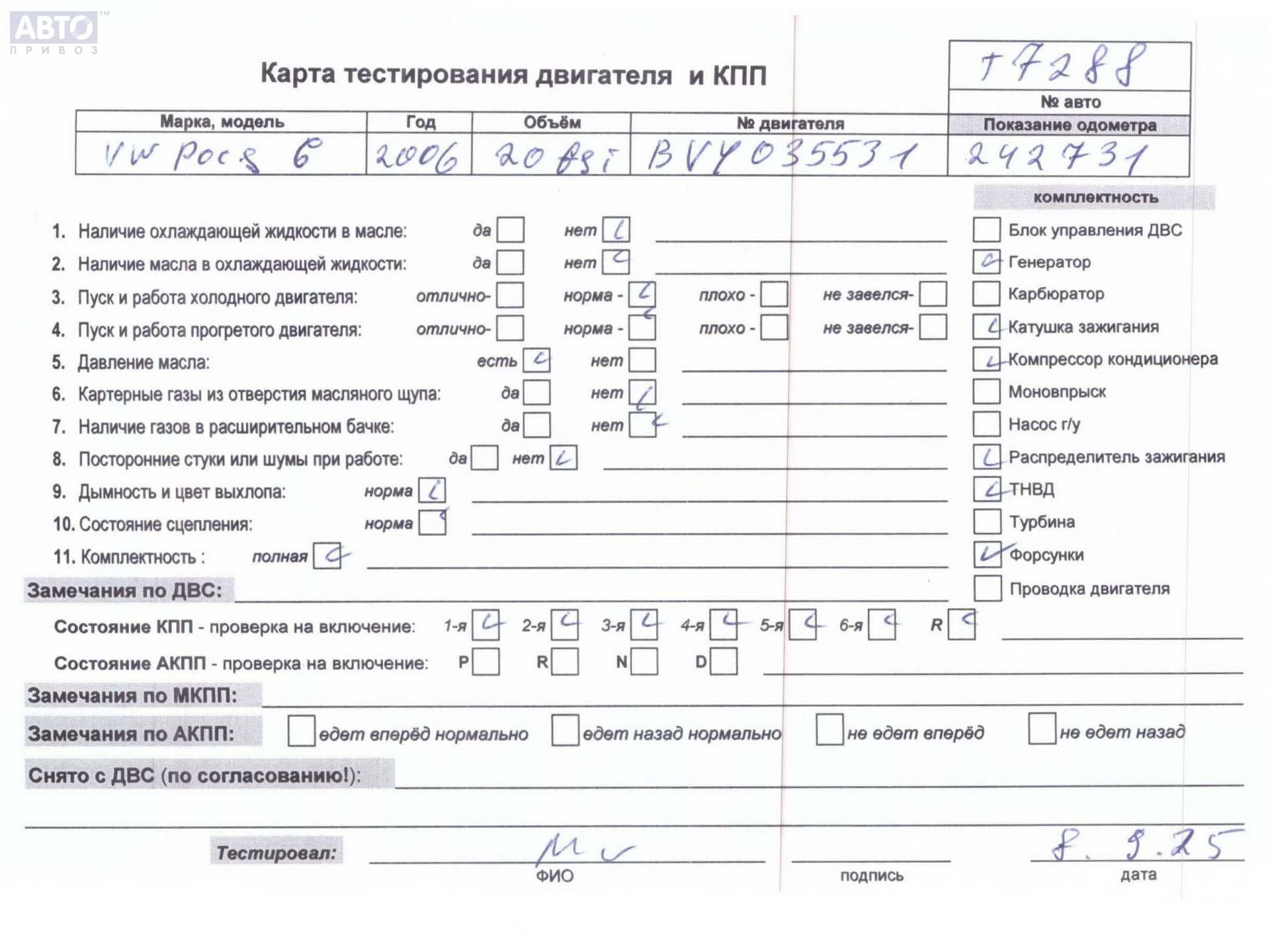 | Марка / Модель / Год: | Volkswagen Passat B6 2006 |