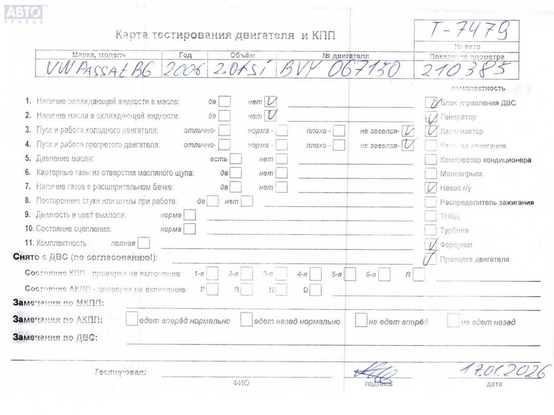 | Марка / Модель / Год: | Volkswagen Passat B6 2006 |