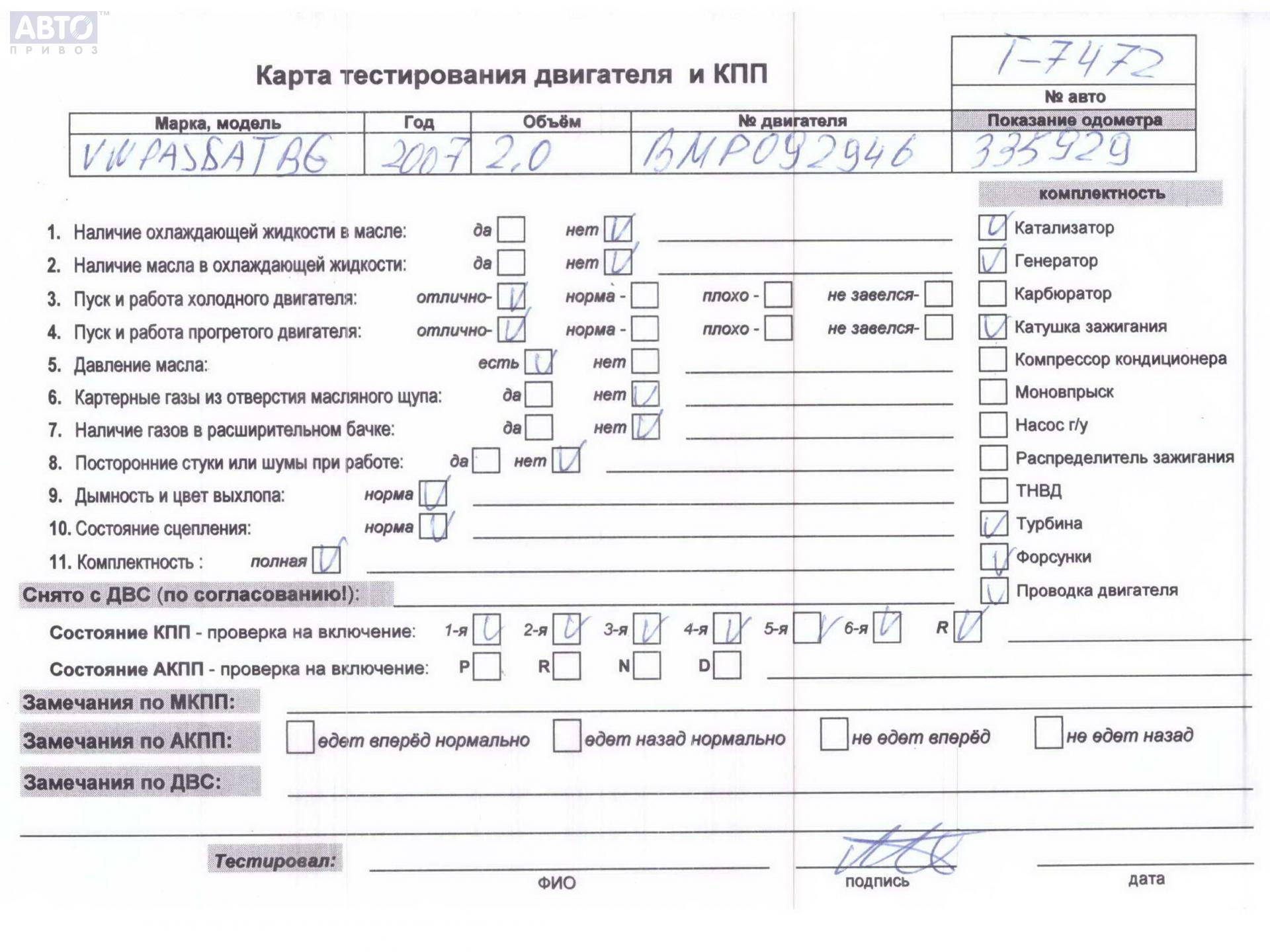 | Автомобиль / VIN: | T7472 WVWZZZ3CZ7E027901 |