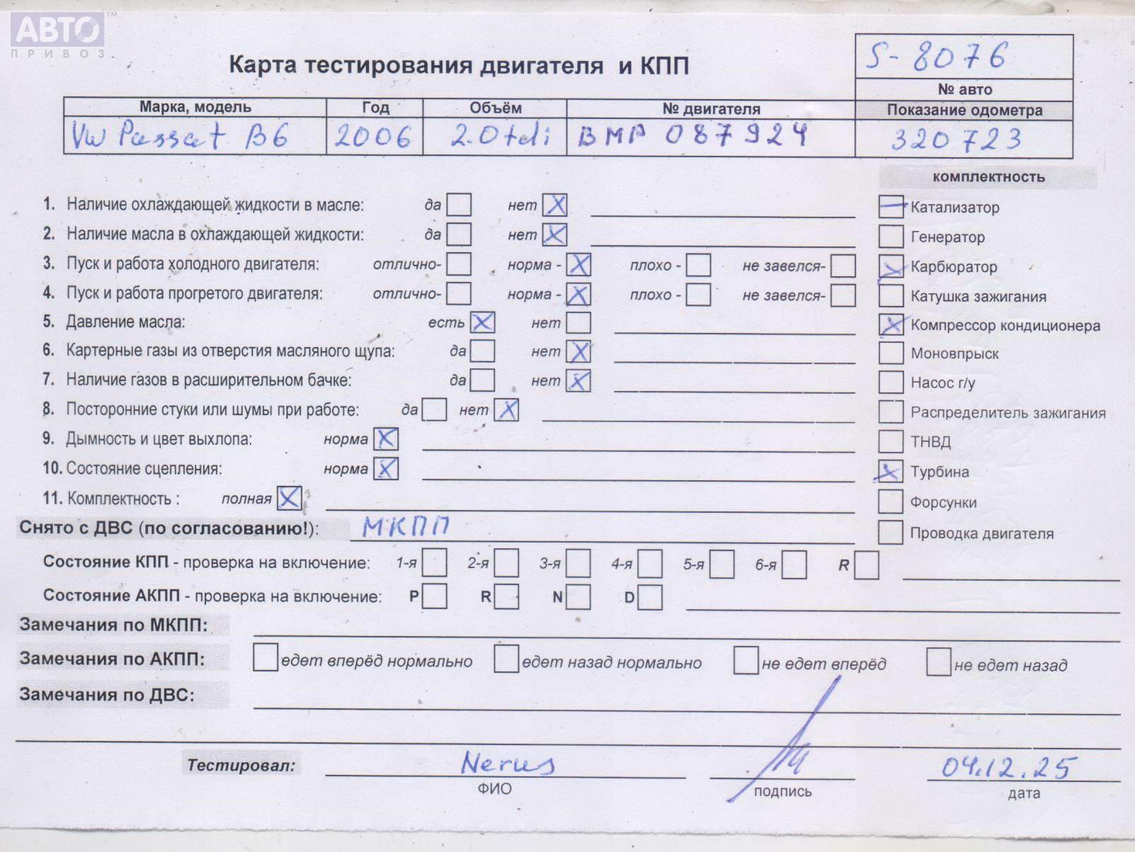 | Марка / Модель / Год: | Volkswagen Passat B6 2006 |