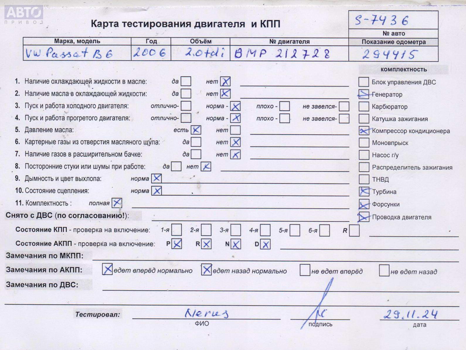 | Марка / Модель / Год: | Volkswagen Passat B6 2007 |