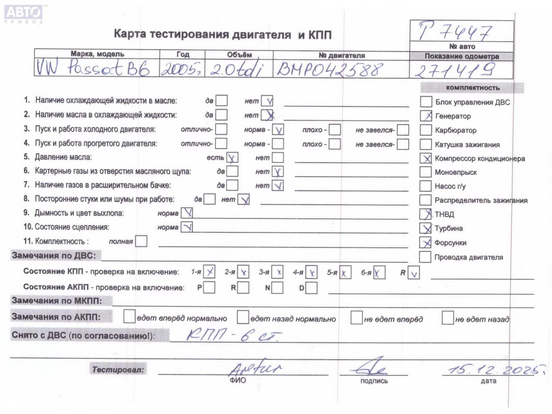| Марка / Модель / Год: | Volkswagen Passat B6 2005 |