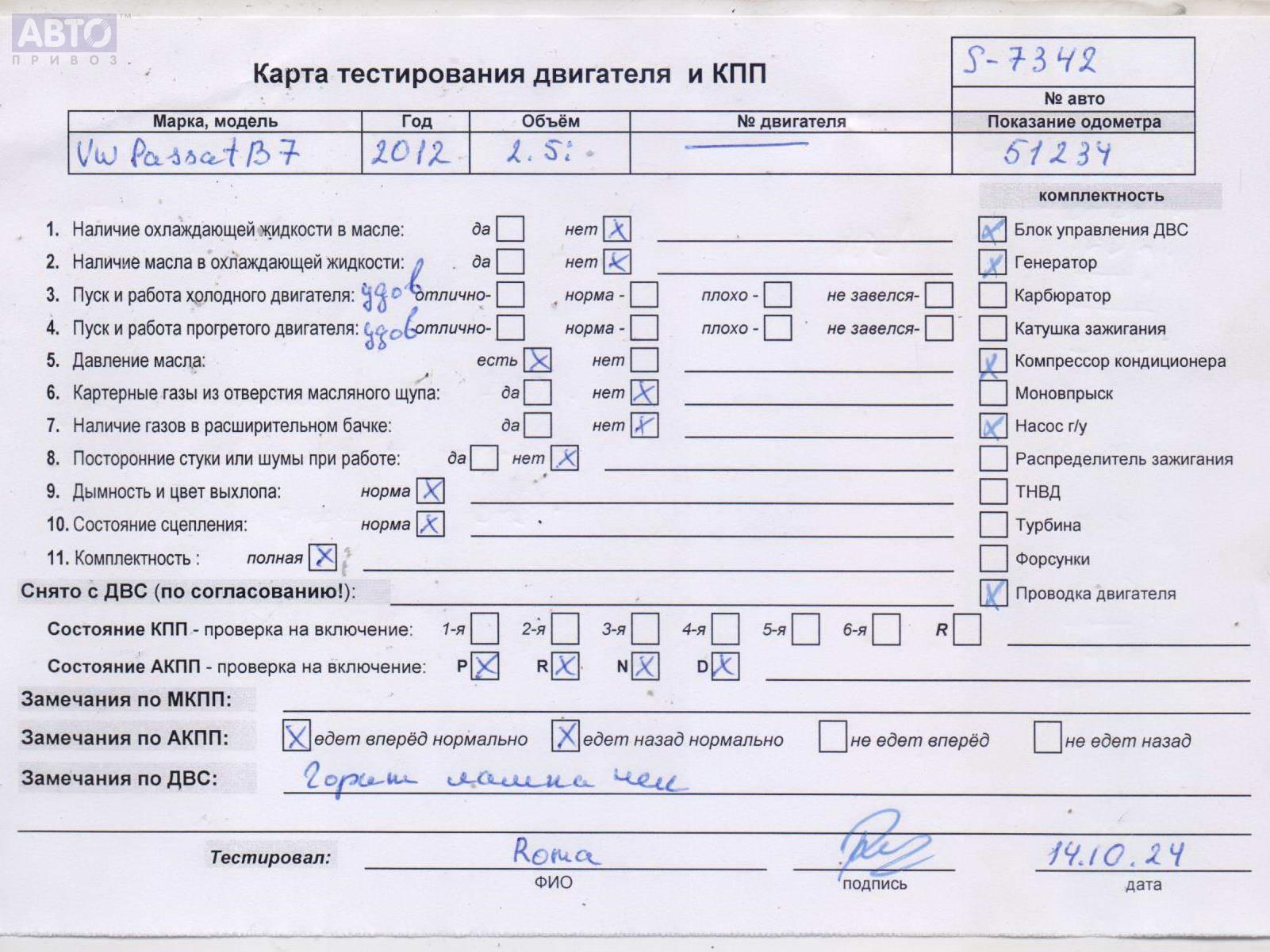 | Марка / Модель / Год: | Volkswagen Passat B7 USA 2012 |