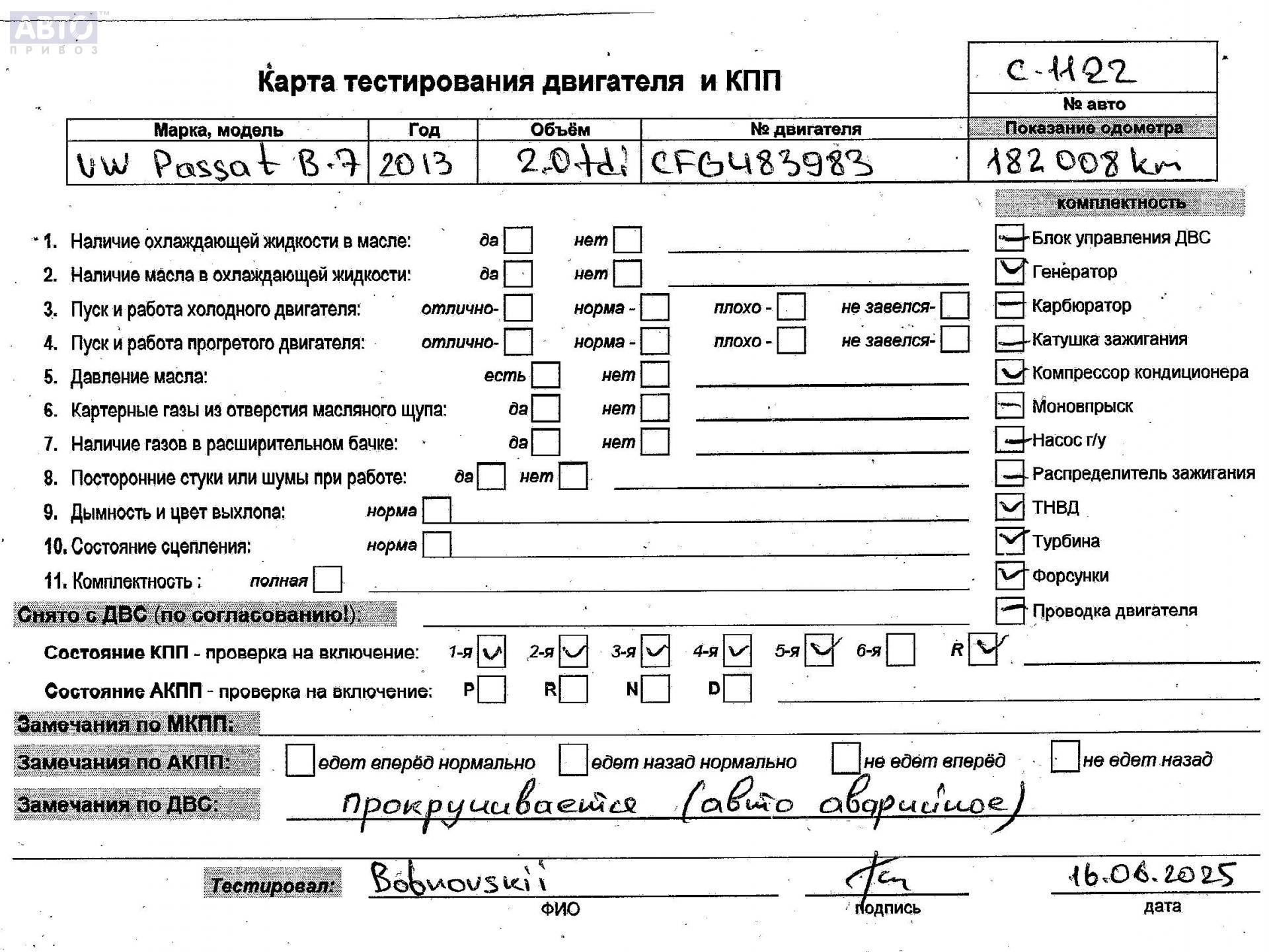 | Марка / Модель / Год: | Volkswagen Passat B7 2013 |