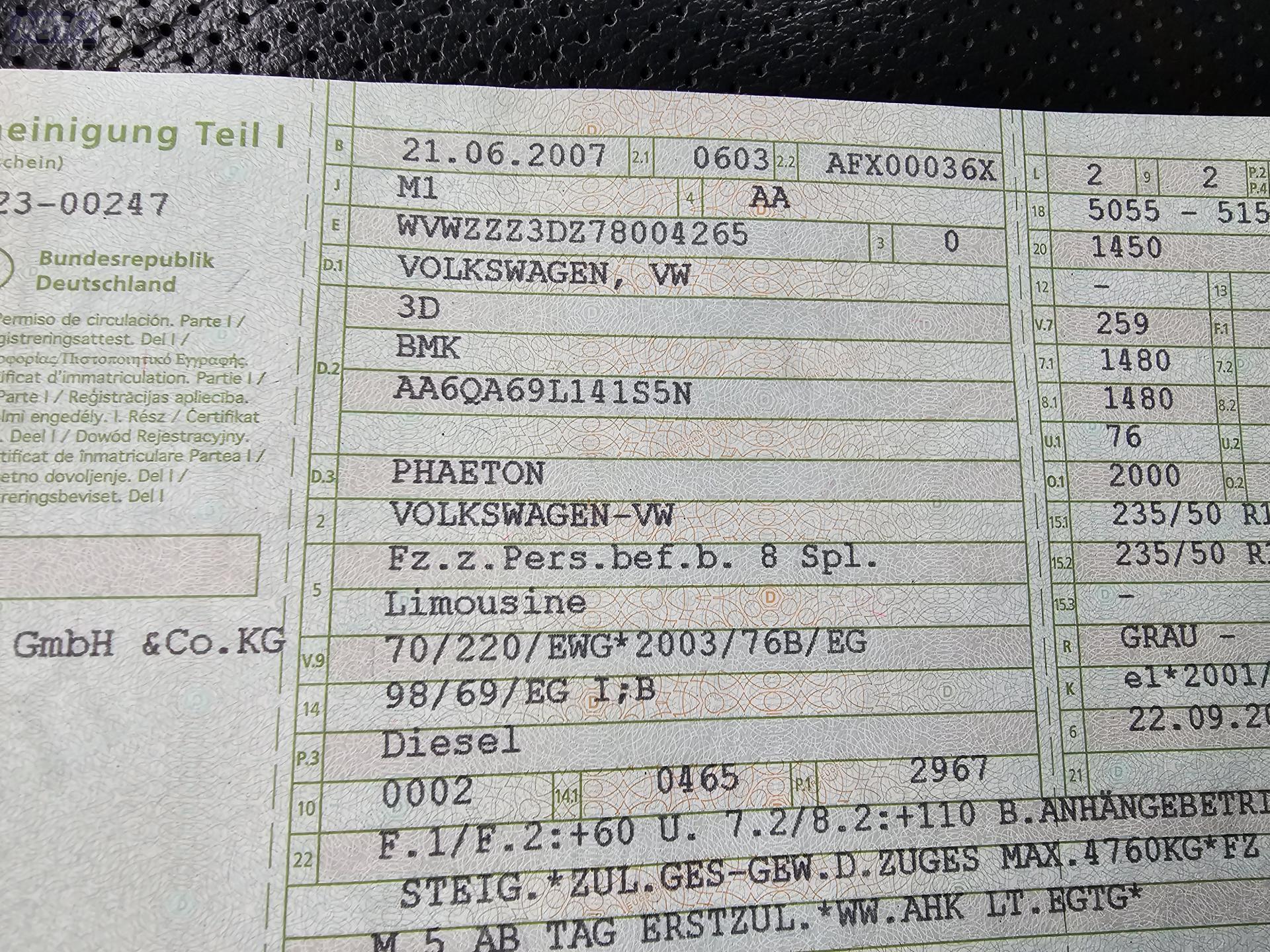 | Марка / Модель / Год: | Volkswagen Phaeton 2007 |