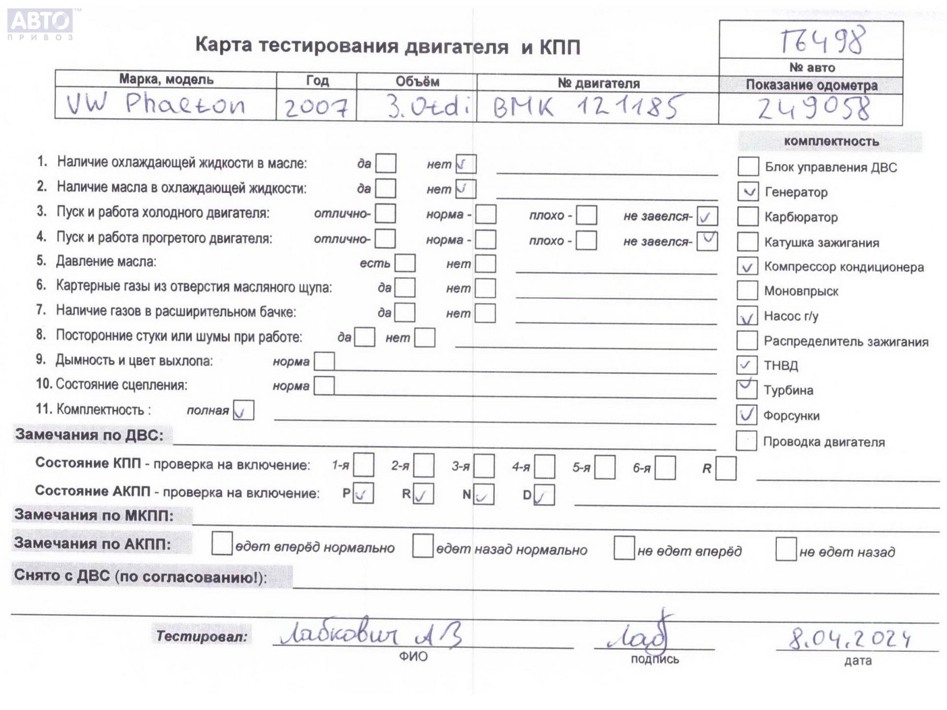 | Автомобиль / VIN: | T6498 WVWZZZ3DZ78004265 |