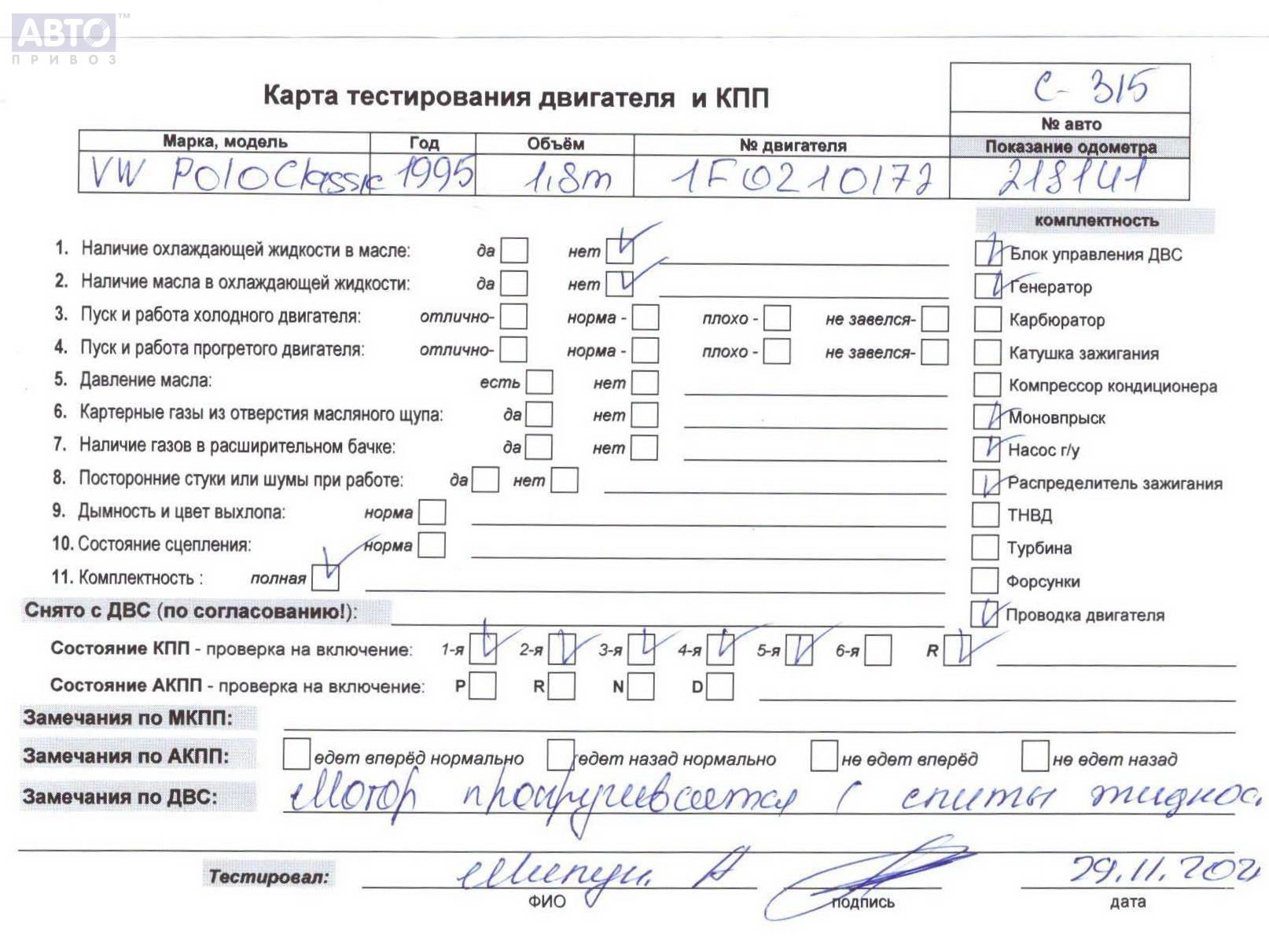 | Марка / Модель / Год: | Volkswagen Polo (1994-1999) 1995 |