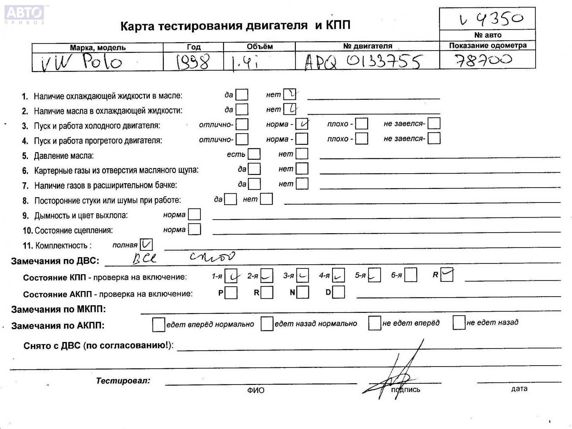| Марка / Модель / Год: | Volkswagen Polo (1994-1999) 1998 |