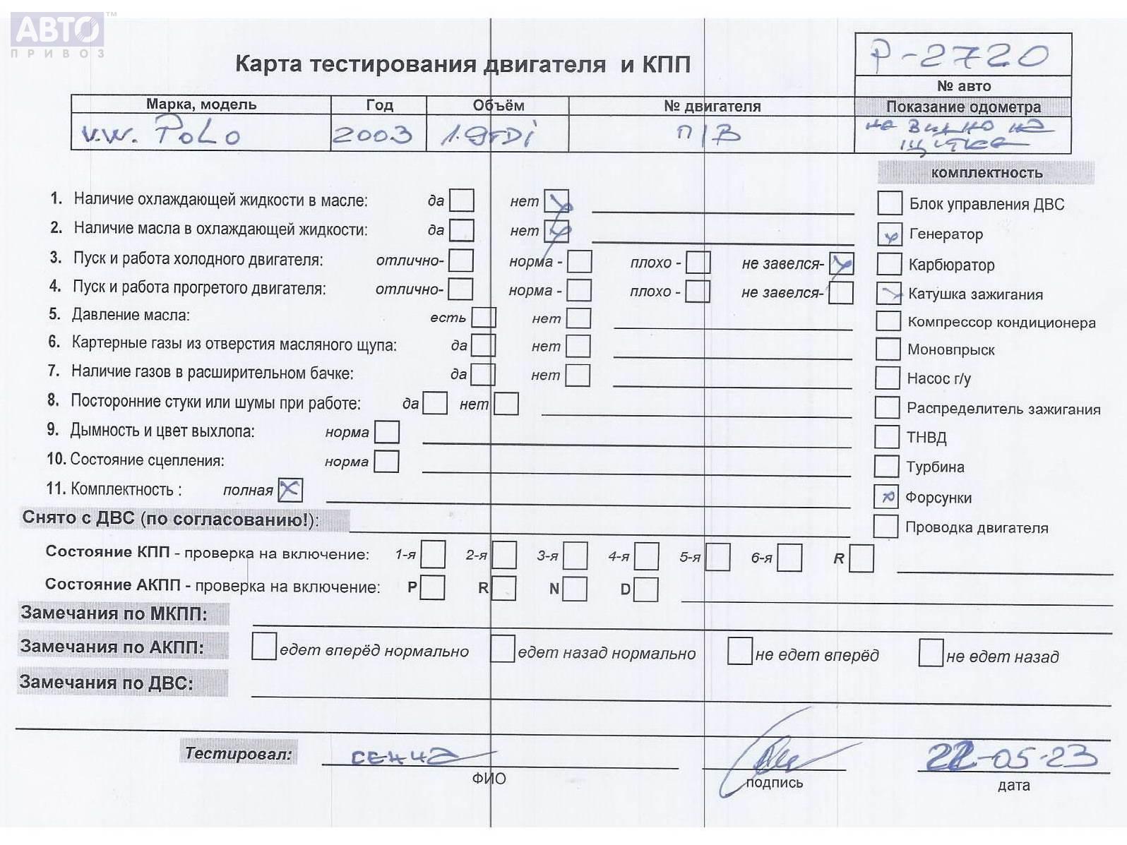 | Марка / Модель / Год: | Volkswagen Polo (2001-2005) 2003 |
