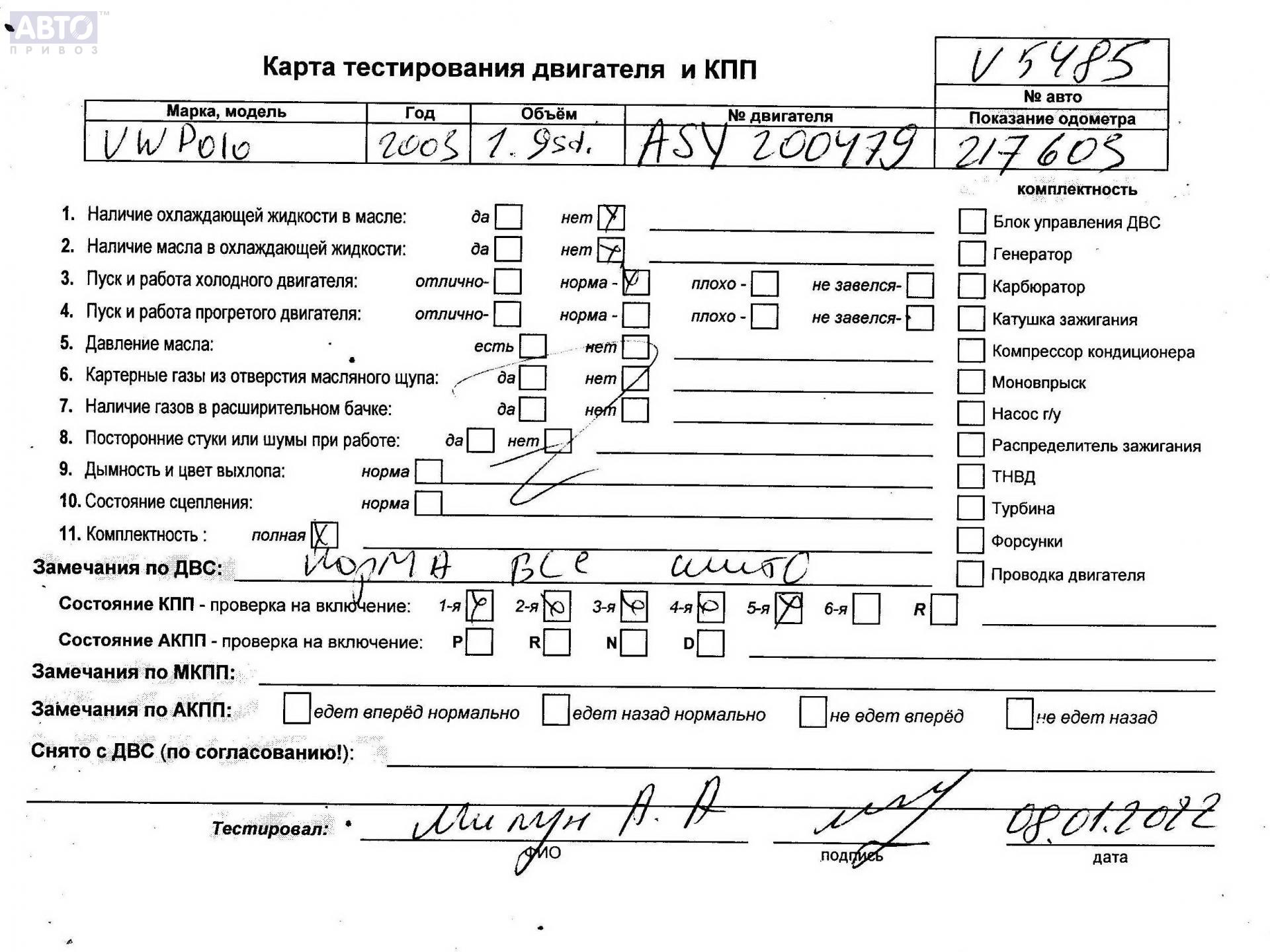| Автомобиль / VIN: | V5485 WVWZZZ9NZ4Y055664 |