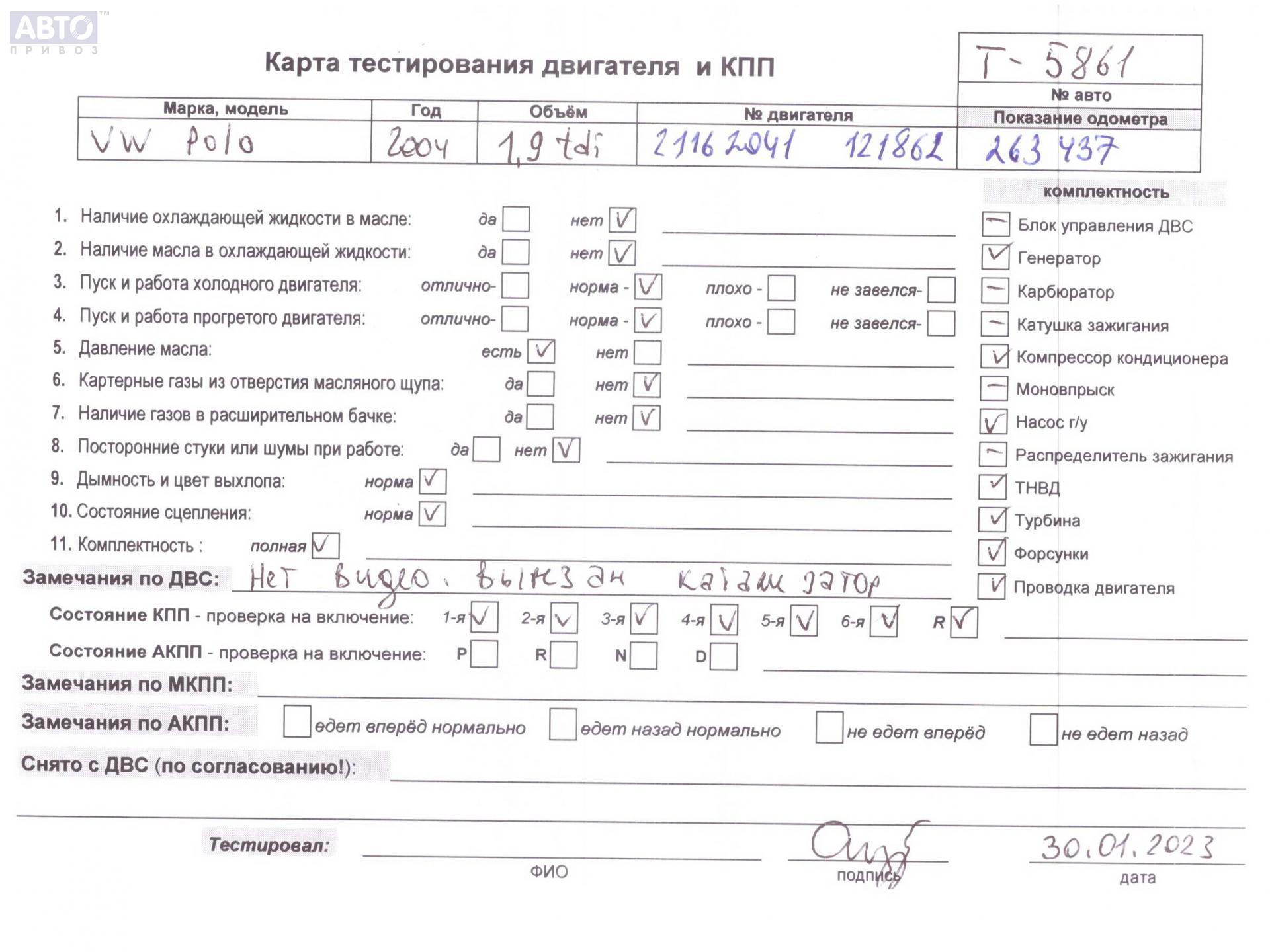 | Марка / Модель / Год: | Volkswagen Polo (2001-2005) 2004 |