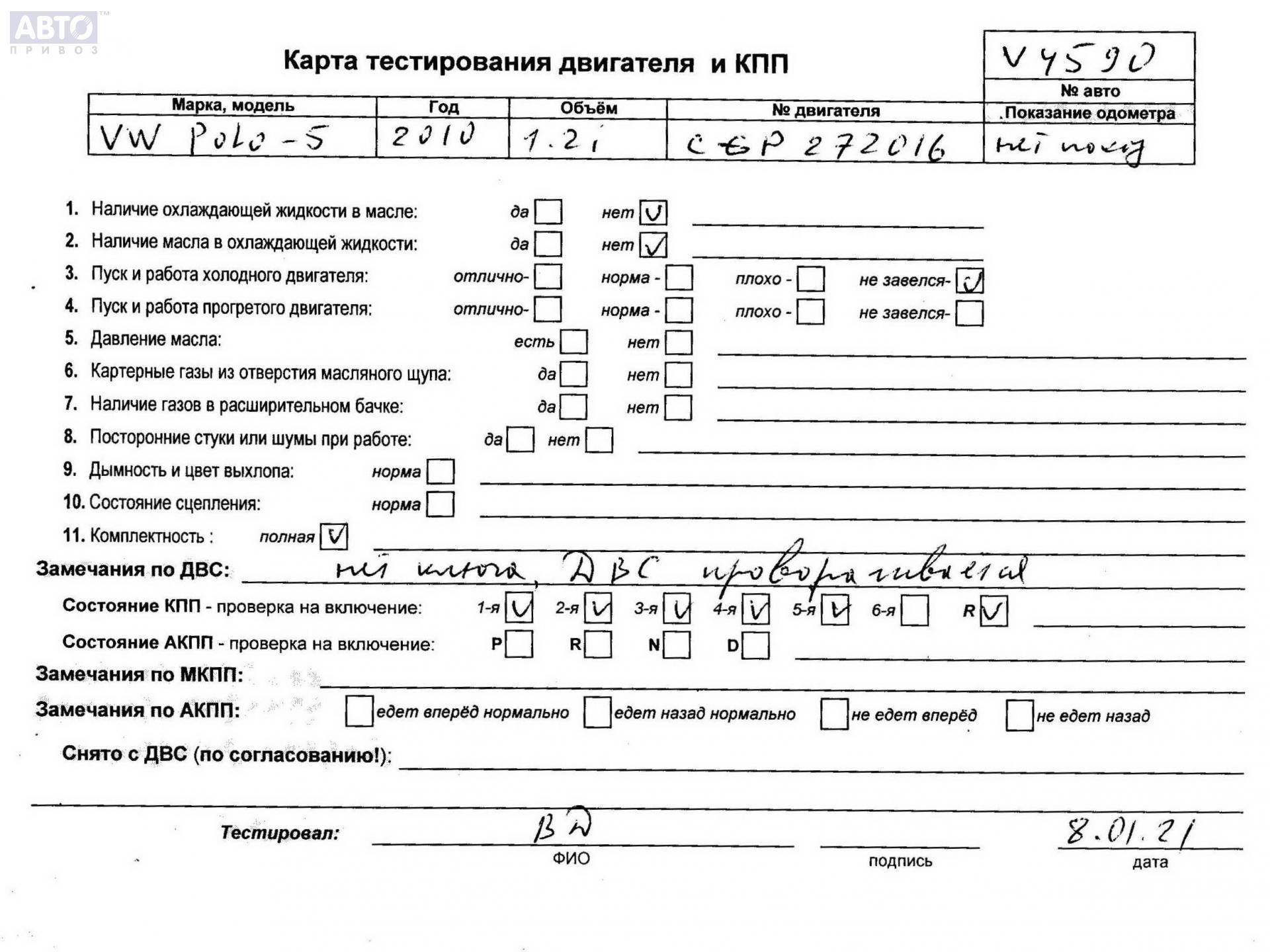| Марка / Модель / Год: | Volkswagen Polo (c 2010) 2010 |