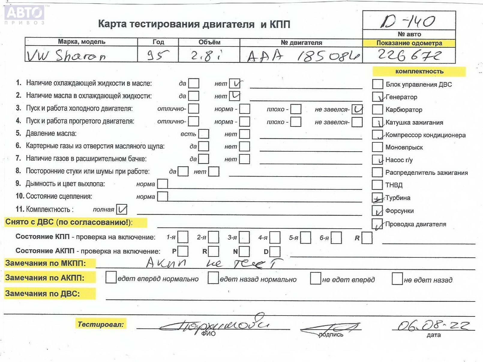 | Марка / Модель / Год: | Volkswagen Sharan (1995-2000) 1995 |