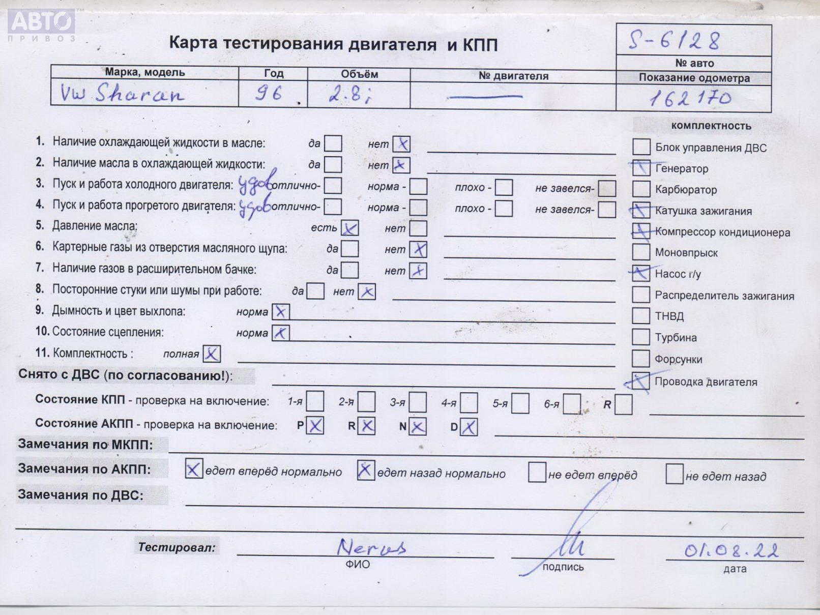 | Марка / Модель / Год: | Volkswagen Sharan (1995-2000) 1996 |
