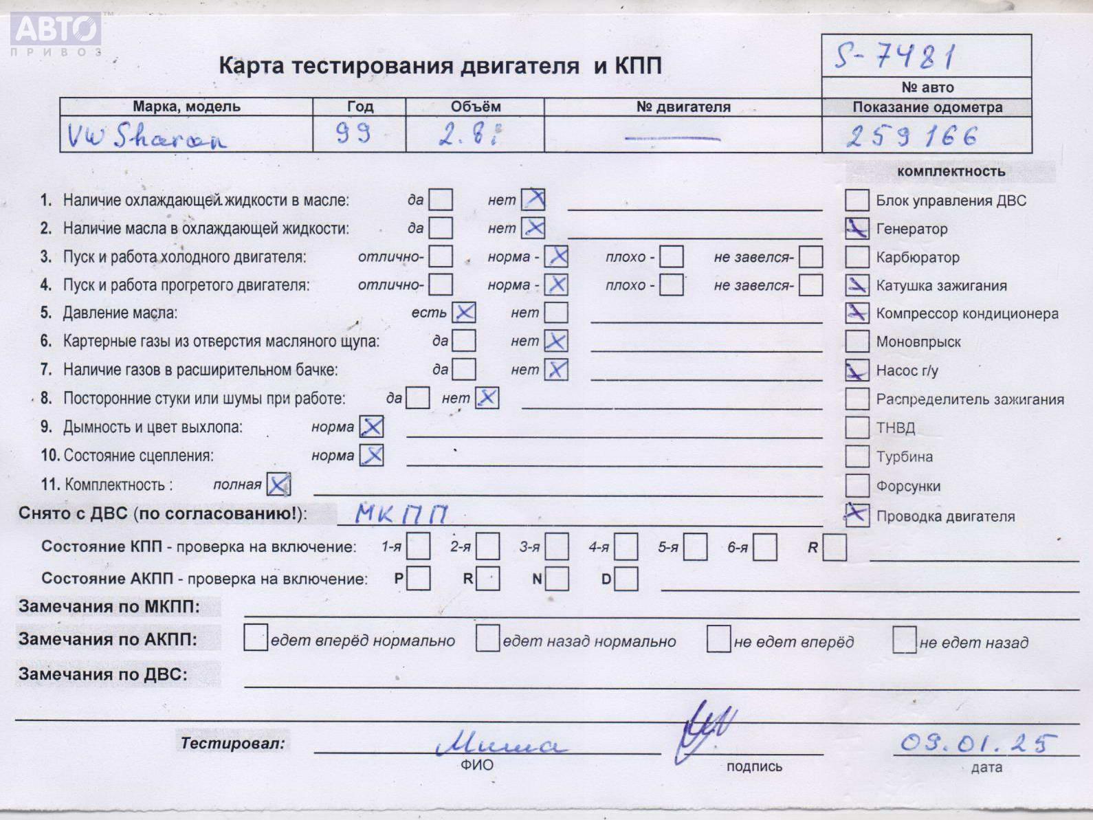 | Марка / Модель / Год: | Volkswagen Sharan (1995-2000) 1999 |