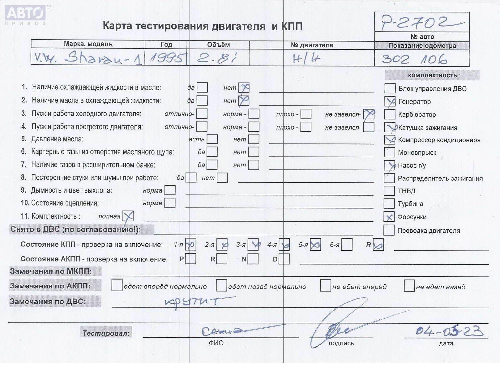 | Марка / Модель / Год: | Volkswagen Sharan (1995-2000) 1995 |