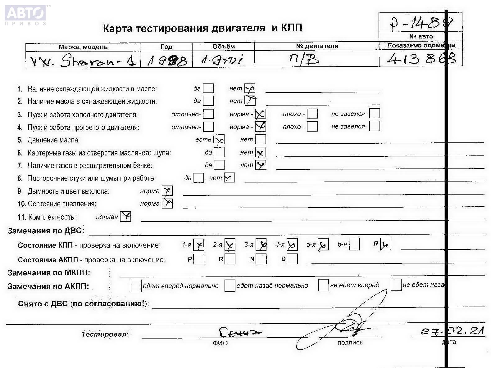 | Марка / Модель / Год: | Volkswagen Sharan (1995-2000) 1999 |