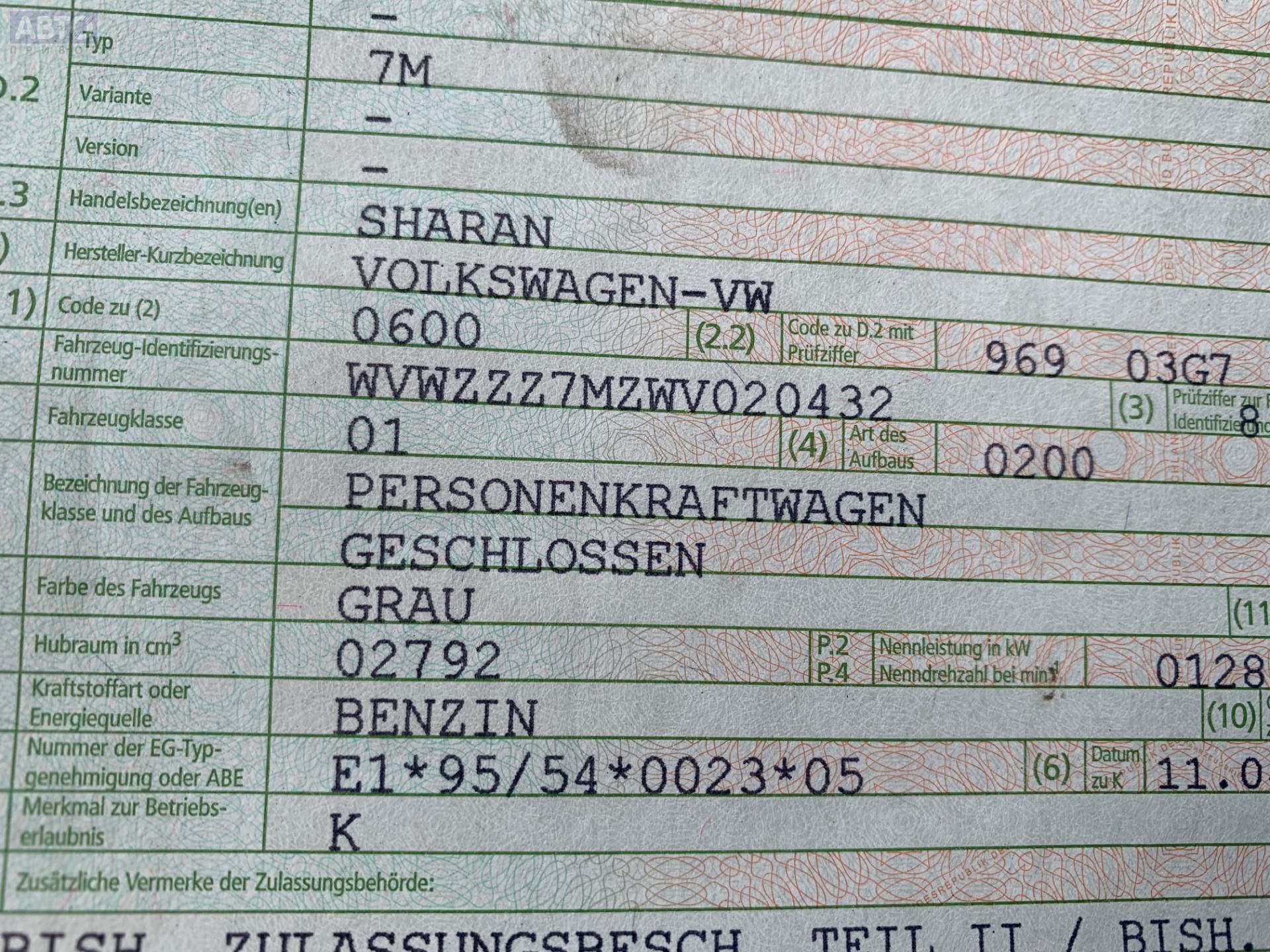 | Марка / Модель / Год: | Volkswagen Sharan (1995-2000) 1997 |