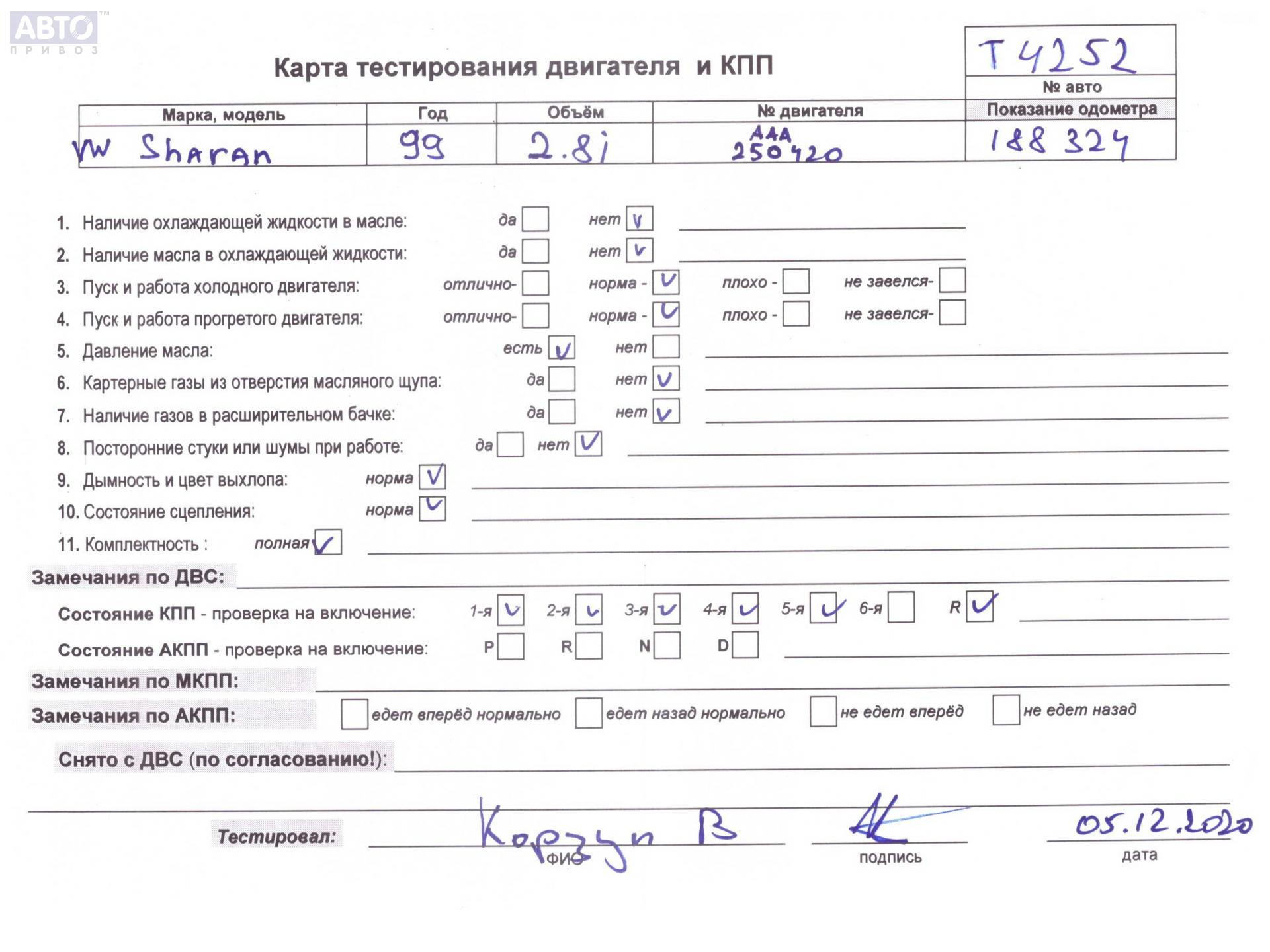 | Автомобиль / VIN: | T4252 WVWZZZ7MZWV020432 |