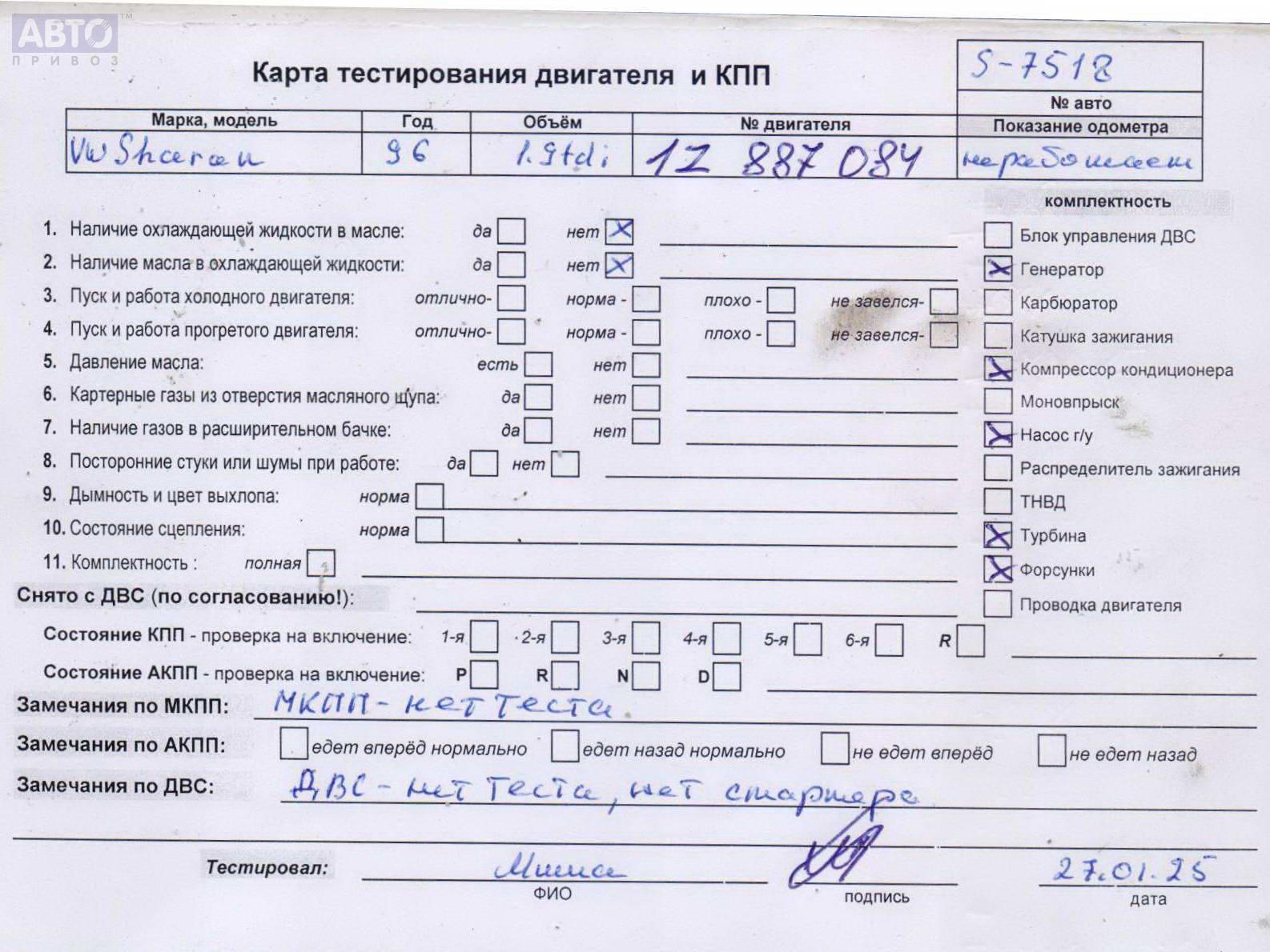 | Автомобиль / VIN: | S7518 WVWZZZ7MZVV008687 |