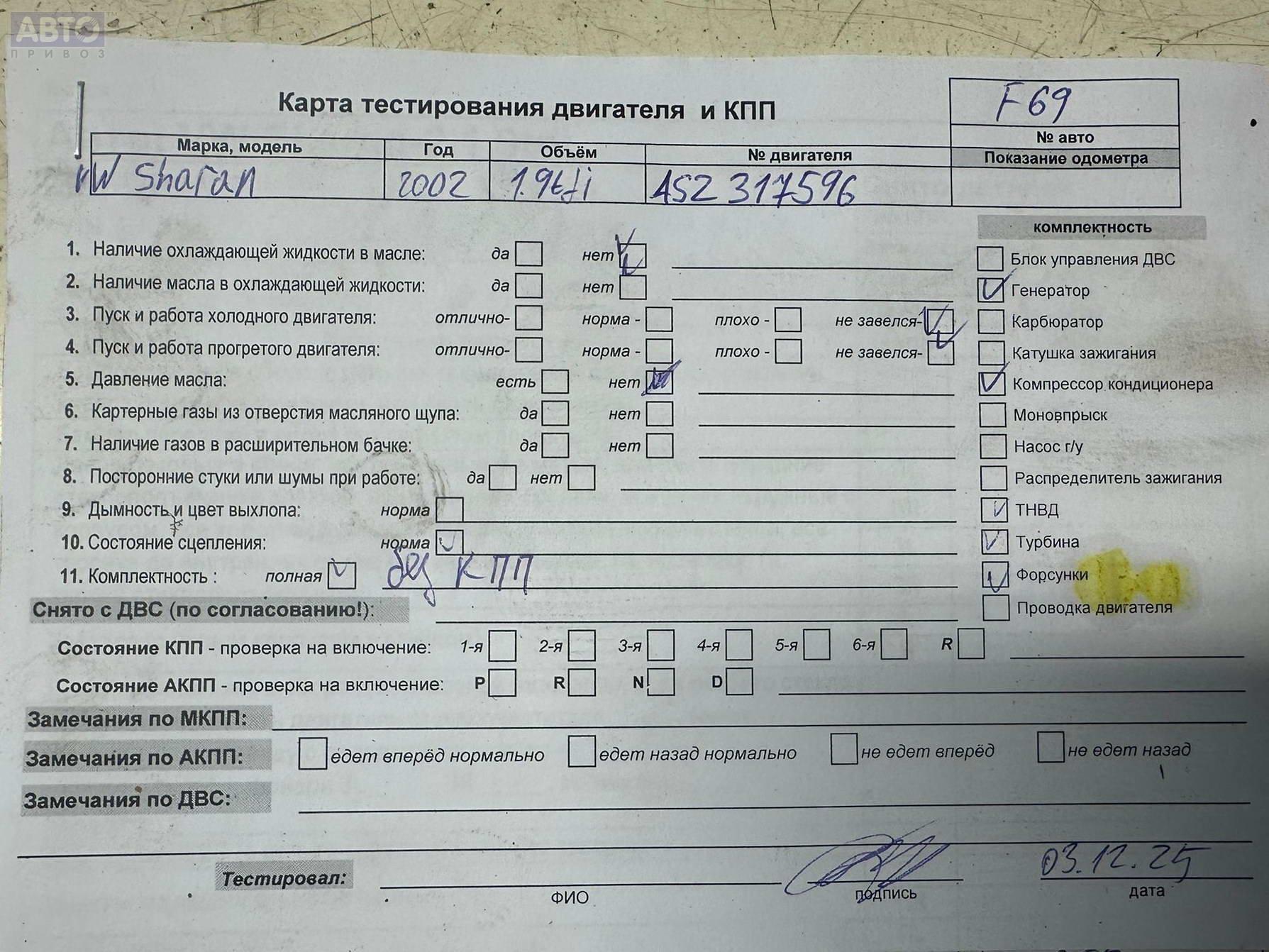 | Марка / Модель / Год: | Volkswagen Sharan (2000-2010) 2003 |