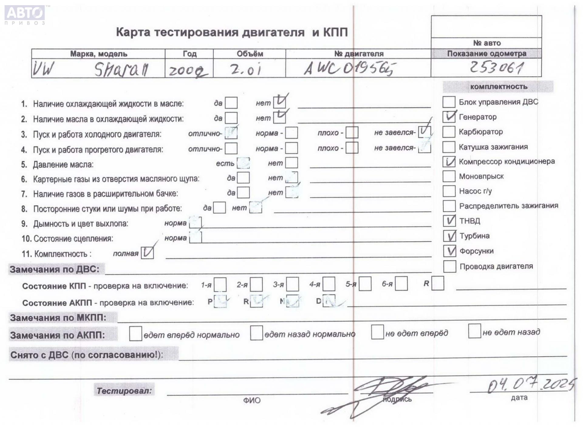 | Марка / Модель / Год: | Volkswagen Sharan (2000-2010) 2002 |