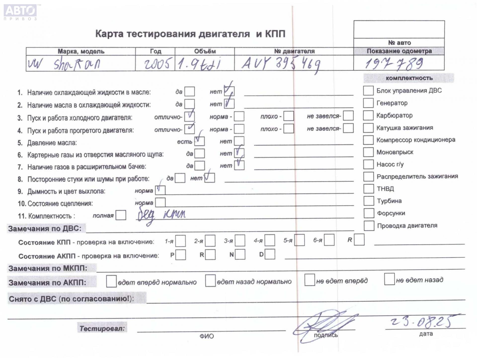 | Марка / Модель / Год: | Volkswagen Sharan (2000-2010) 2005 |