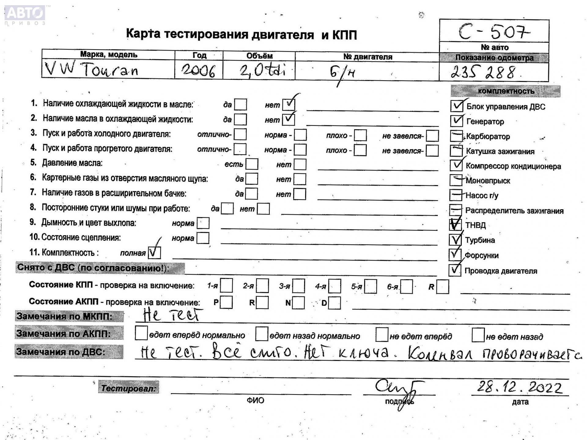 | Марка / Модель / Год: | Volkswagen Touran 2006 |