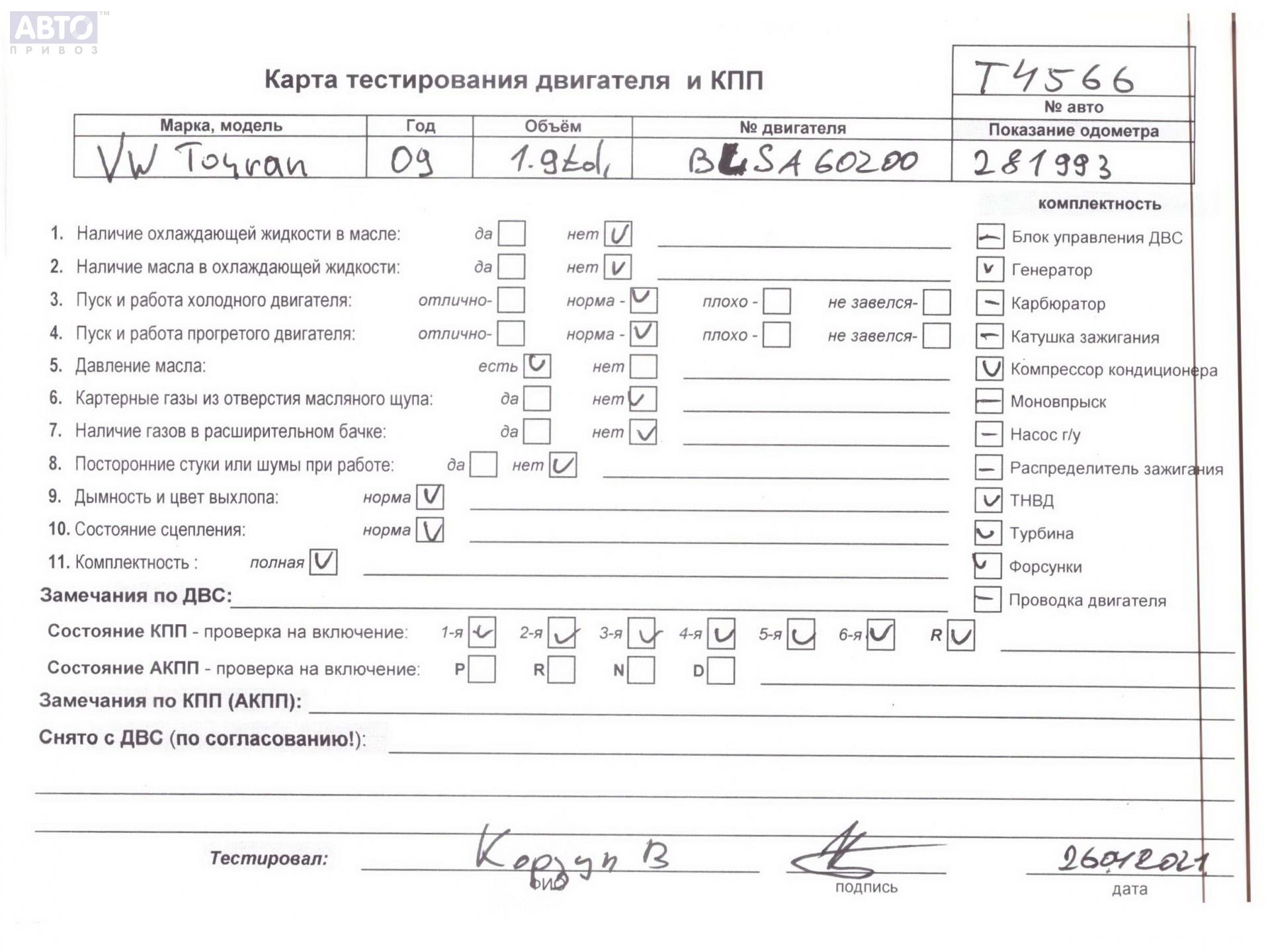 | Марка / Модель / Год: | Volkswagen Touran 2009 |