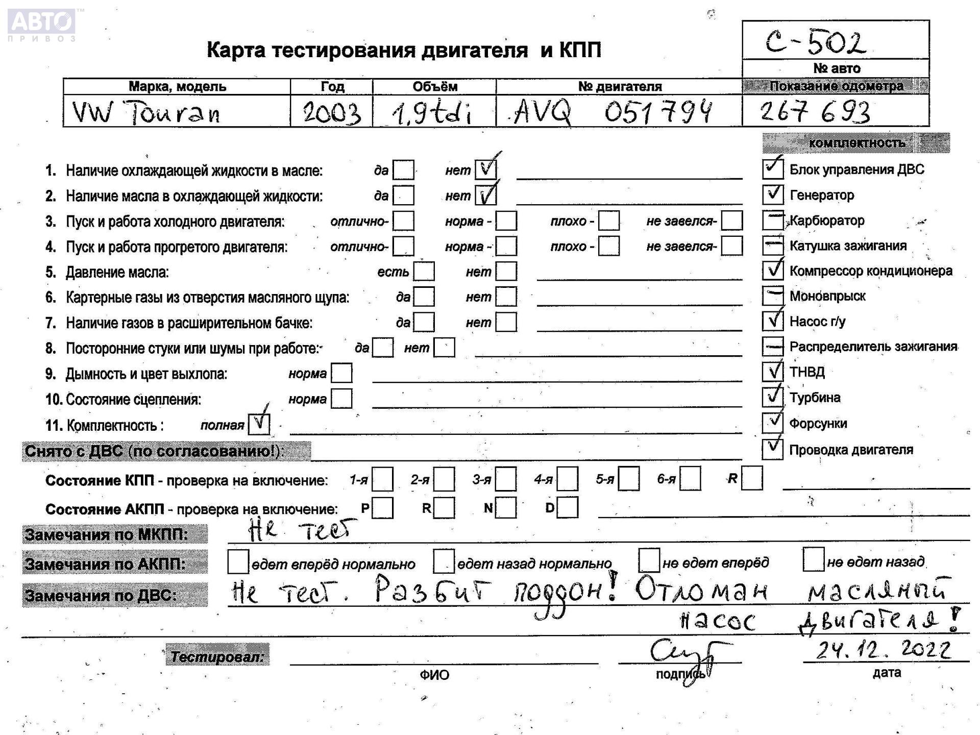 | Марка / Модель / Год: | Volkswagen Touran 2003 |