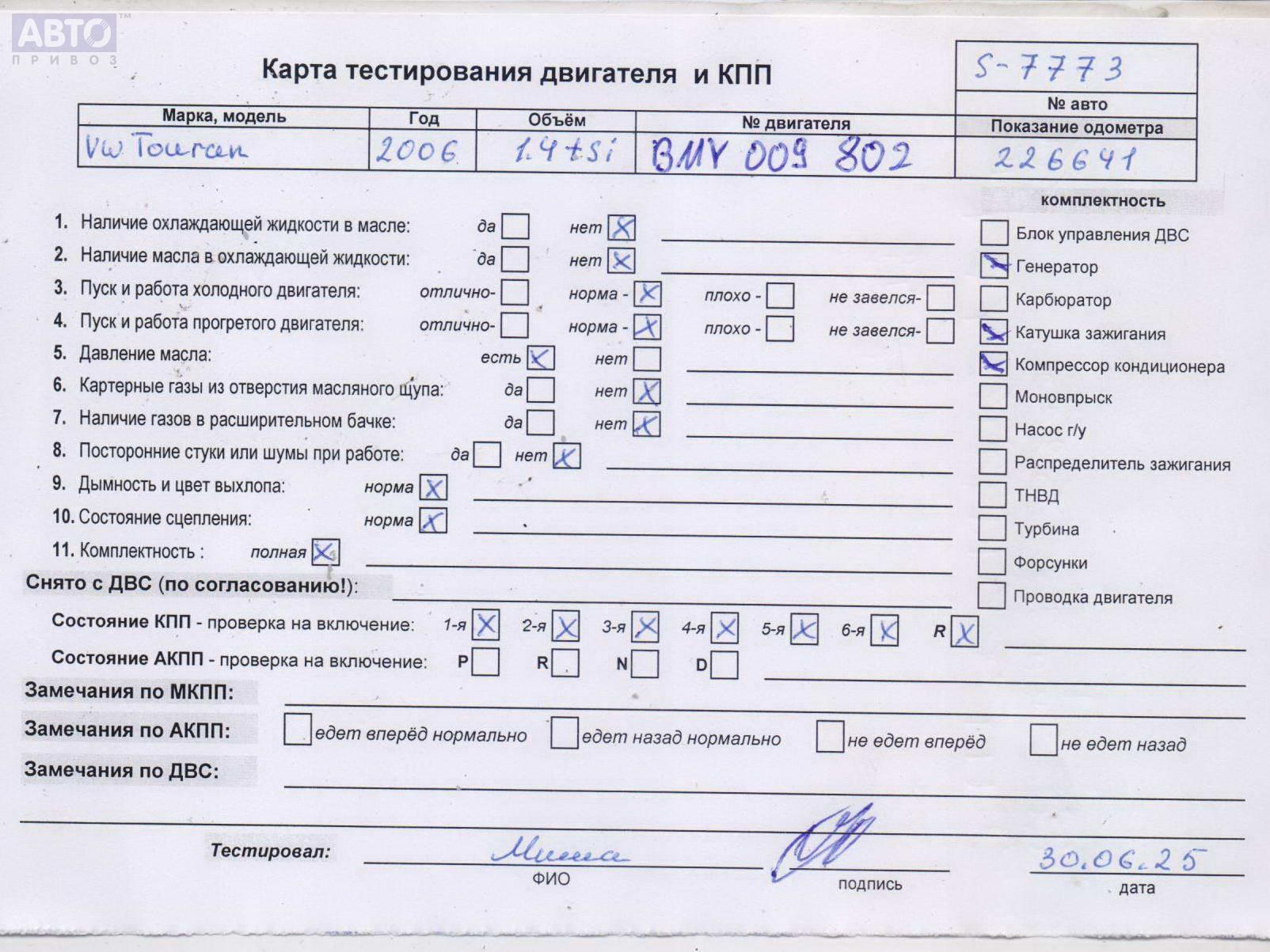| Марка / Модель / Год: | Volkswagen Touran 2006 |