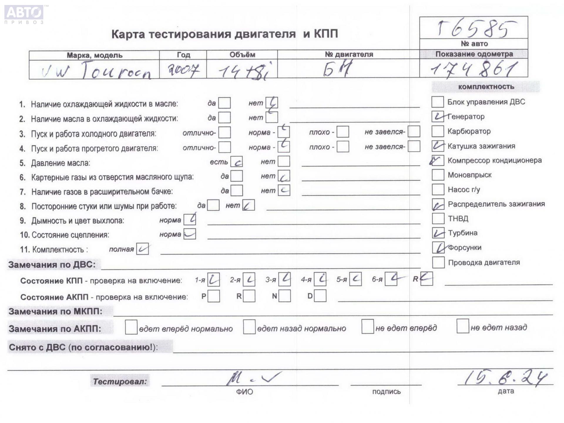 | Марка / Модель / Год: | Volkswagen Touran 2007 |