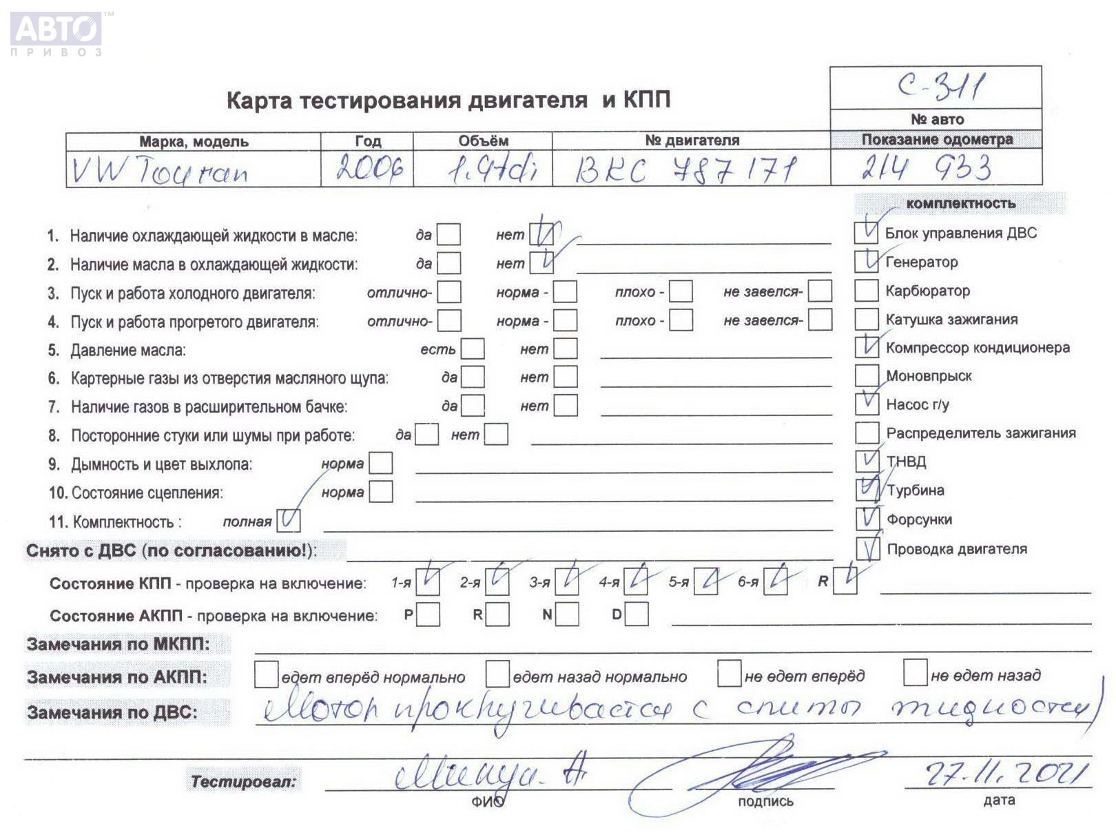| Марка / Модель / Год: | Volkswagen Touran 2006 |