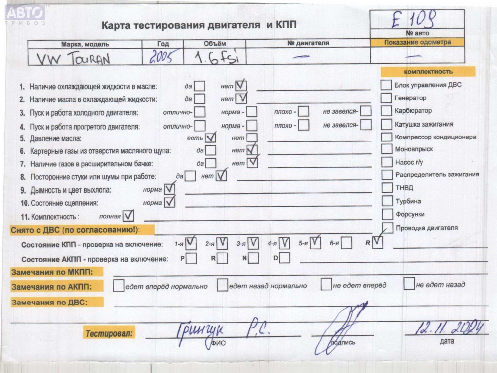 | Марка / Модель / Год: | Volkswagen Touran 2004 |
