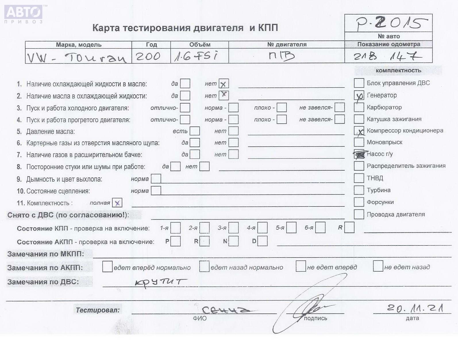 | Марка / Модель / Год: | Volkswagen Touran 2004 |