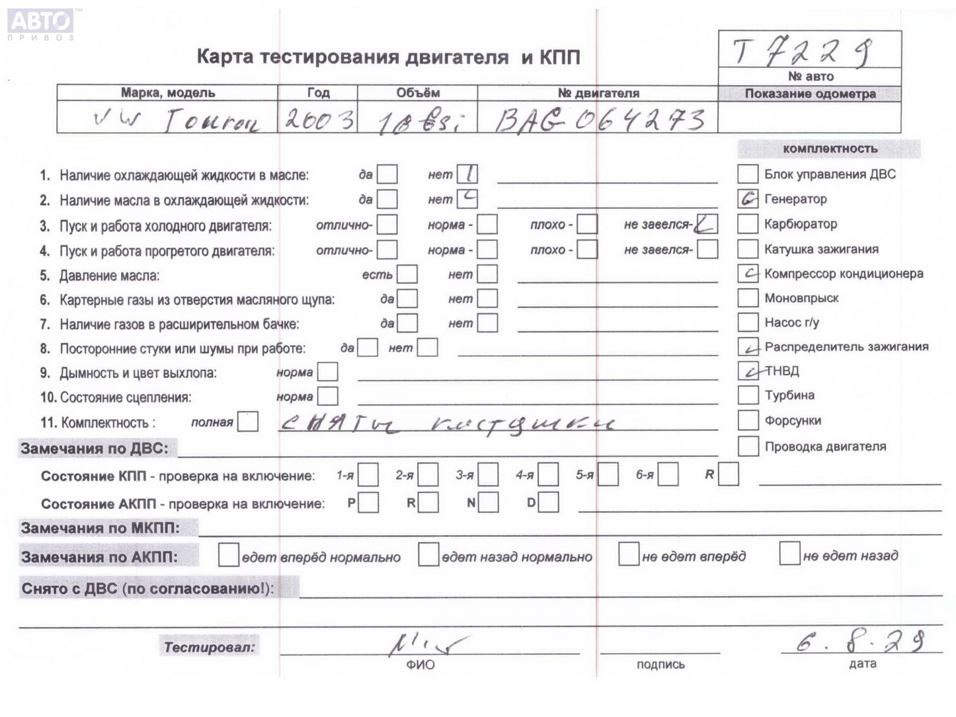 | Марка / Модель / Год: | Volkswagen Touran 2004 |